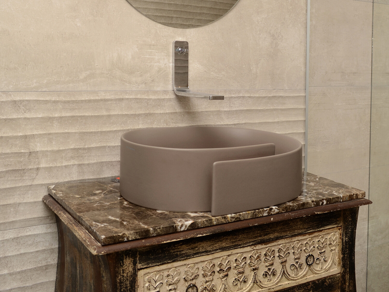 Bacha Espiral De Loza Marrón Mate De Apoyo 56X42X17