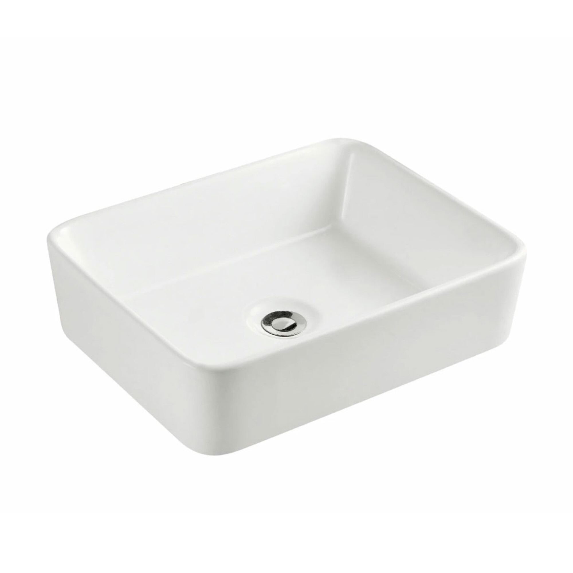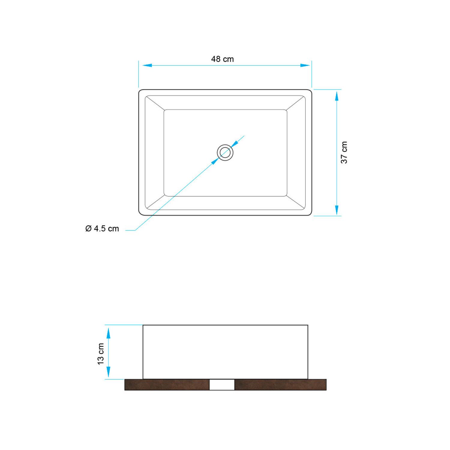 BACHA rectangular de apoyo de loza blanca de 48x37x13 cm. Su diseño moderno y funcional la hace perfecta para baños contemporáneos. Fabricada con materiales de alta calidad para una durabilidad excepcional.