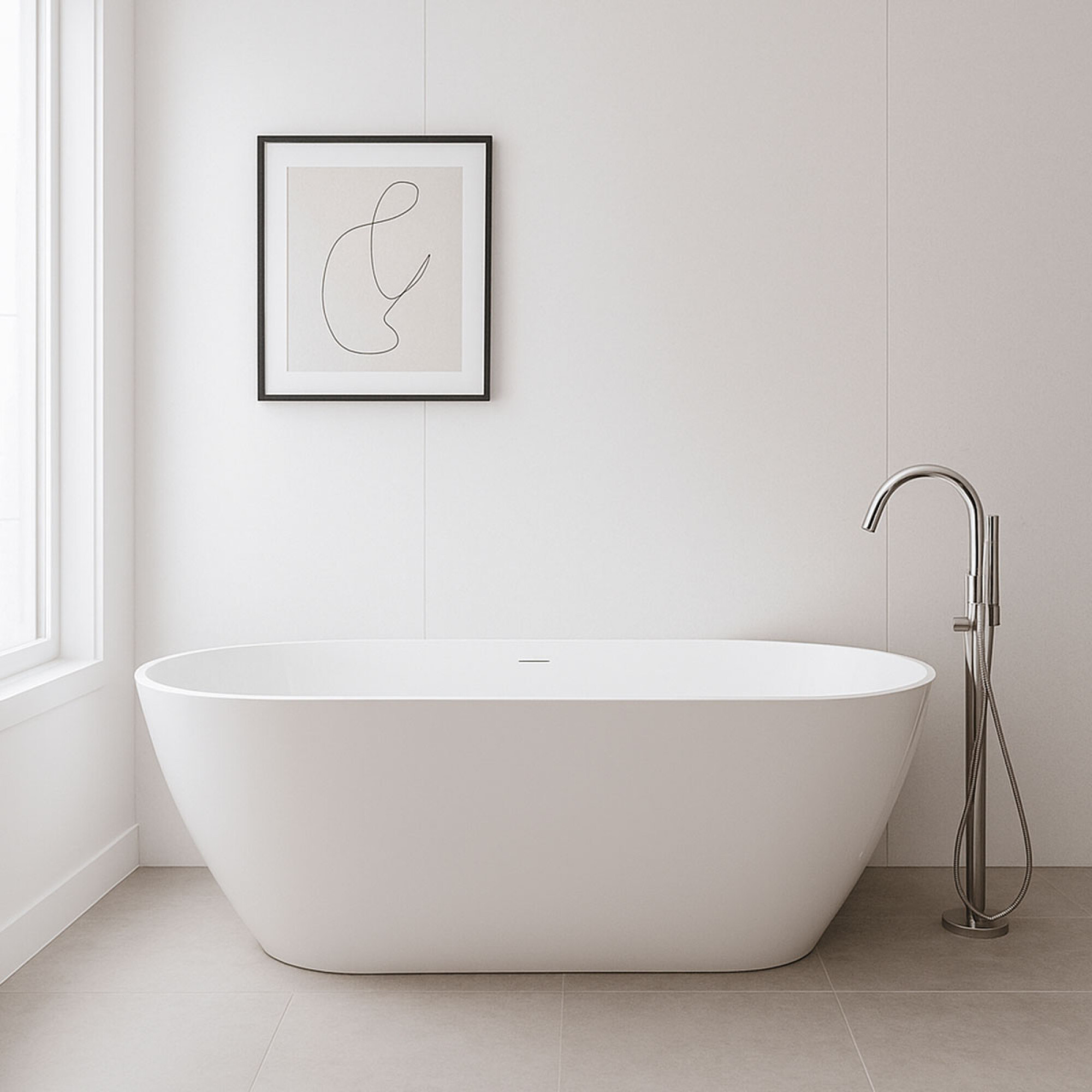 Bañera autoportante AQ631105-W de la serie Trout, en acrílico blanco brillante, con dimensiones generosas de 180x80x60 cm. Diseñada para ofrecer una experiencia de baño confortable, su silueta suave se adapta perfectamente al cuerpo, promoviendo el relax. El acabado brillante amplifica la luminosidad del baño, mientras que el acrílico asegura resistencia y facilidad de mantenimiento. Incluye sistema de desagüe y rebosadero. Recomendado para proyectos residenciales de alta gama donde se prioriza confort y estilo moderno.