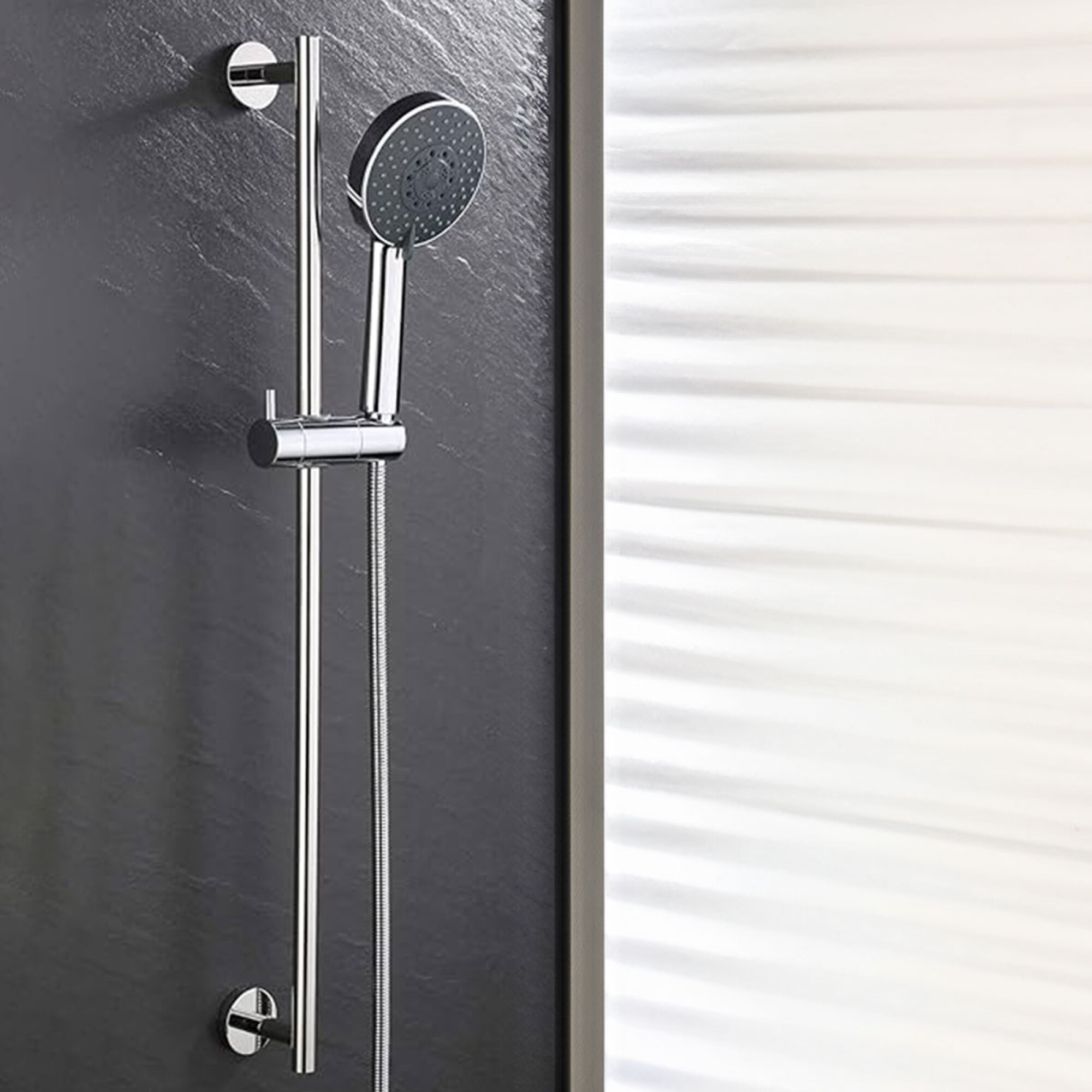 Barral de ducha de acero inoxidable 201 deslizante cromado, medidas 70x18x6 cm. Con su diseño compacto y funcional, este barral es ideal para duchas pequeñas o medianas. Marca: Aqualia.