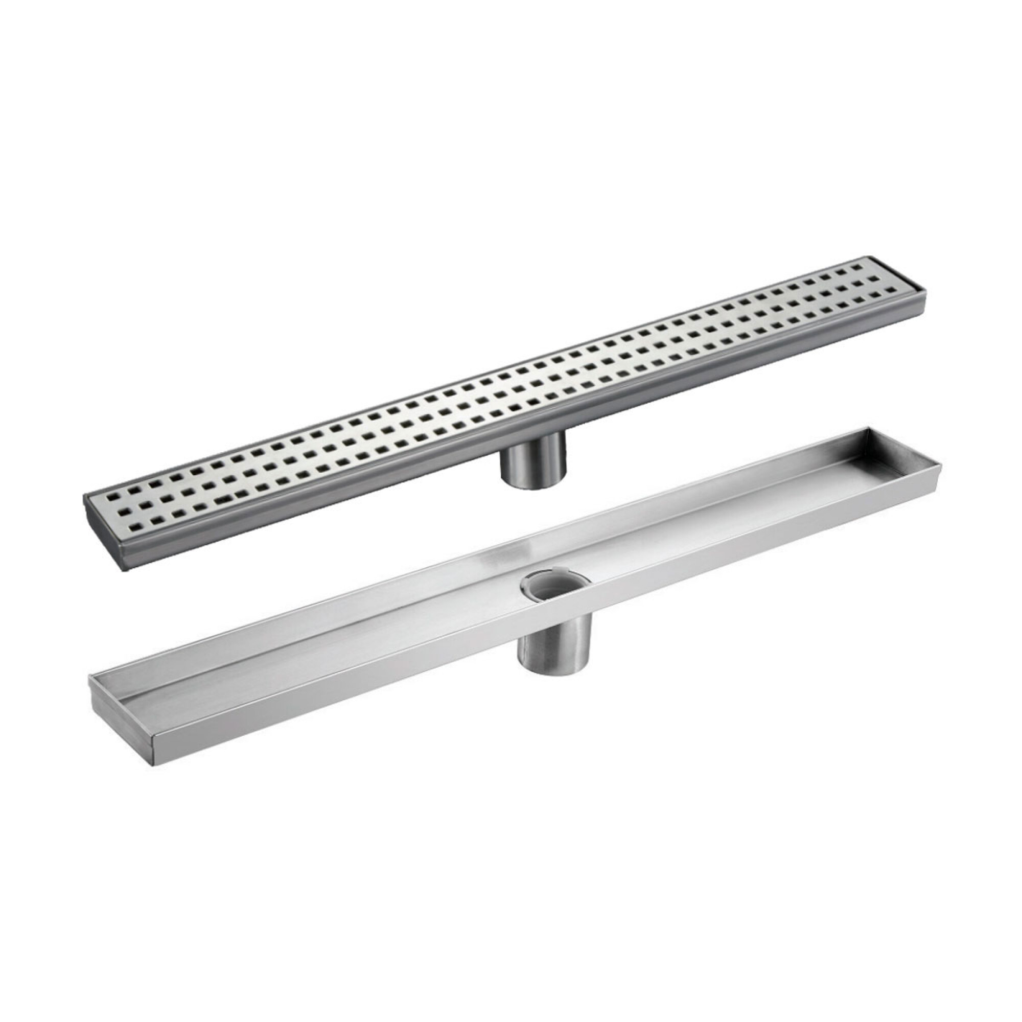 Desagüe rectangular en acero inoxidable de 60x7 cm con salida horizontal, ideal para lavabos, bidets y duchas. Su diseño moderno y elegante complementa cualquier baño contemporáneo, mientras que su construcción en acero inoxidable garantiza resistencia y durabilidad a lo largo del tiempo.
