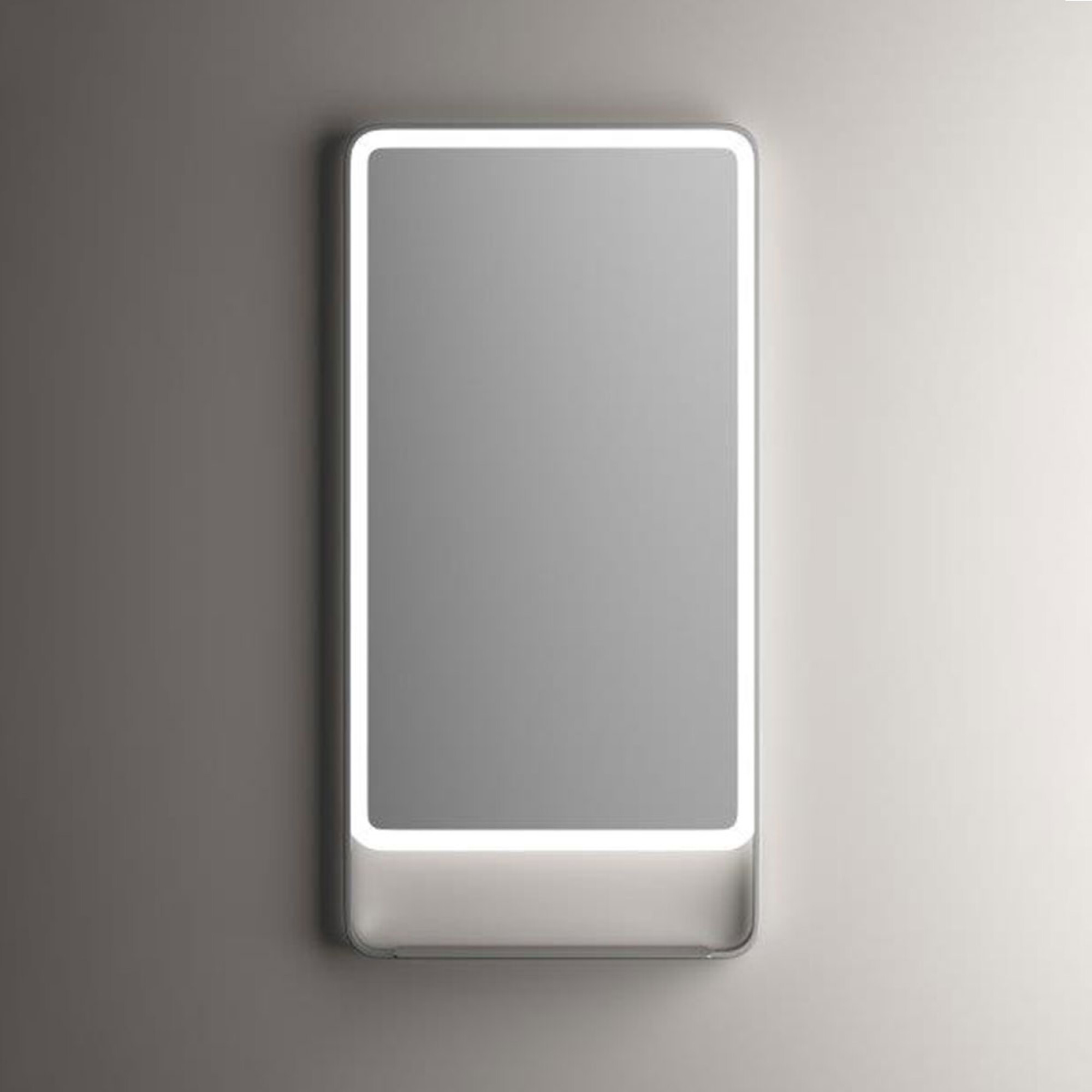 El espejo Aqualia 60x120 cm en acabado brushed nickel combina tecnología y diseño funcional. Incluye luz LED perimetral con encendido táctil “One Touch” y sensor de proximidad, brindando comodidad y eficiencia energética. El estante integrado añade practicidad, permitiendo apoyar objetos de uso diario. Ideal para baños modernos o vestidores, su estética en níquel cepillado aporta elegancia sobria y contemporánea. Un accesorio completo que combina estética y tecnología de iluminación inteligente.