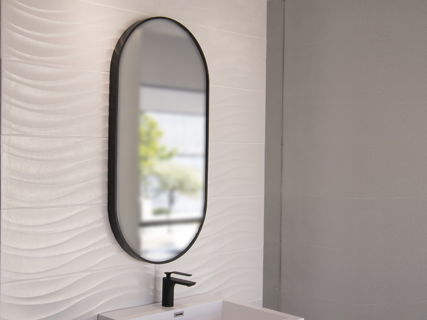 El espejo ovalado AQ141891-N de Feel, con acabado en negro mate, es una opción ideal para aquellos que buscan agregar un toque de estilo moderno y sofisticado a sus baños. Con su forma ovalada, este espejo aporta fluidez al diseño del espacio, mientras que el acabado en negro mate crea un contraste elegante que se adapta a decoraciones minimalistas o industriales. Su marco robusto y su diseño sobrio lo convierten en un elemento visual atractivo, ideal para combinar con accesorios y grifería en tonos oscuros o metálicos. Además de ser estéticamente atractivo, es resistente y fácil de mantener, ideal para baños contemporáneos.