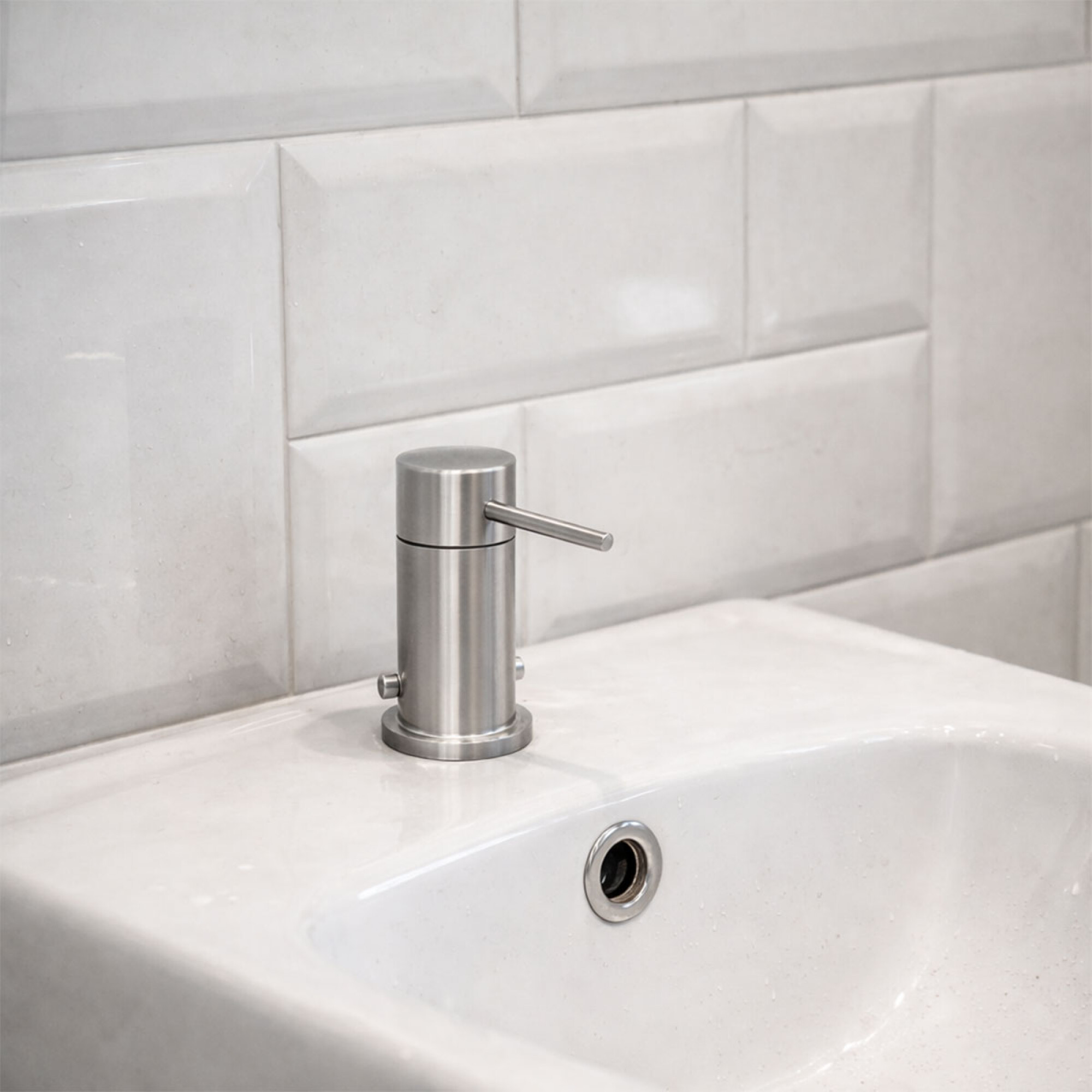 Grifería para bidet con transferencia de la serie Rione, fabricada en acero inoxidable con terminación Brushed Nickel. Su acabado cepillado aporta una apariencia sobria y contemporánea, ideal para baños de diseño actual. La transferencia permite un control cómodo y eficiente del flujo de agua, mejorando la experiencia de uso. Recomendada para baños residenciales y proyectos comerciales de calidad, esta grifería se integra perfectamente con sanitarios y accesorios modernos. Es una opción ideal para quienes buscan una solución funcional.