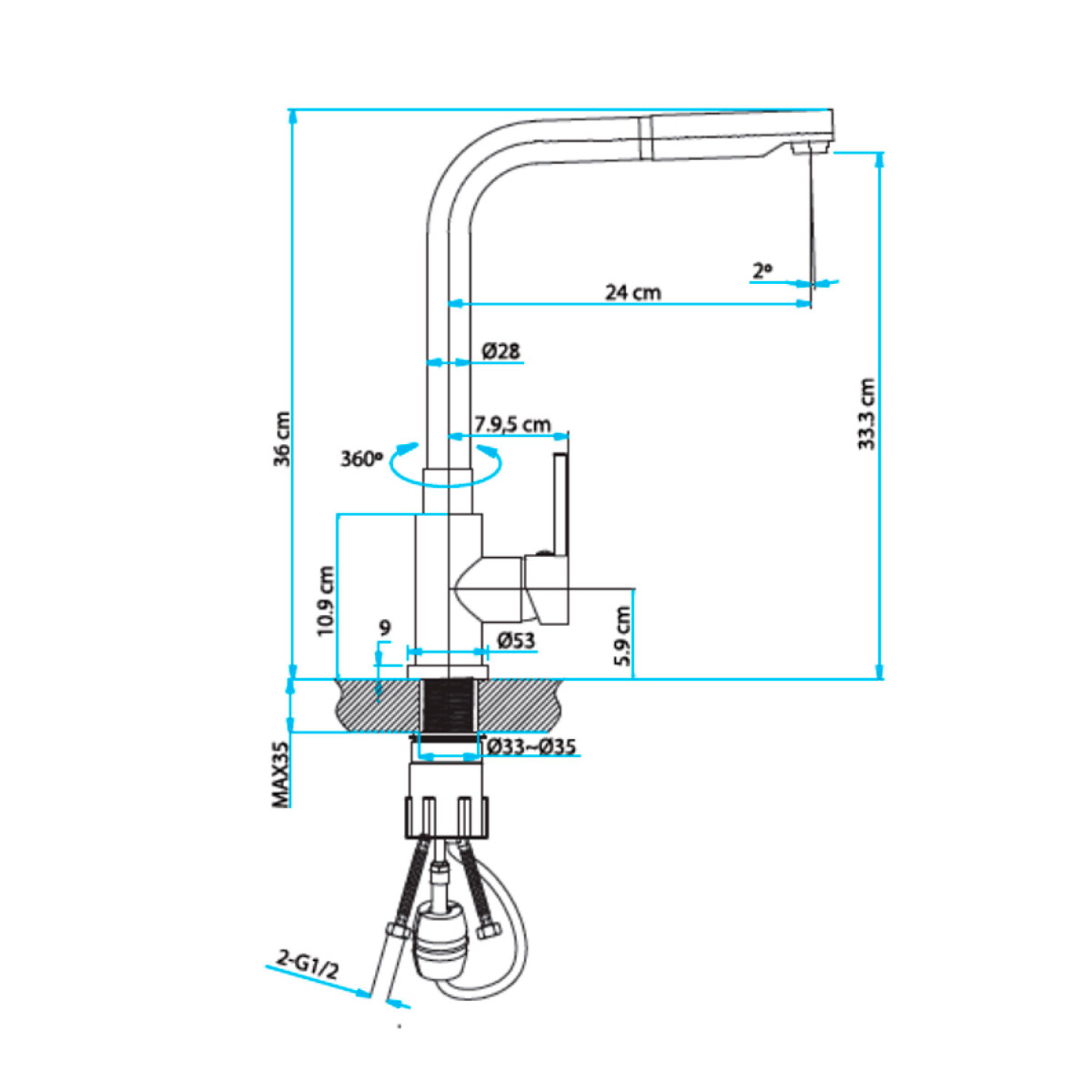El monocomando de cocina cromo de mesada con extensible Latina de Aqualia ofrece versatilidad y funcionalidad en la cocina. Con su diseño elegante y funcionalidad avanzada, este grifo garantiza un rendimiento óptimo y una operación suave y sin esfuerzo. Fabricado con materiales de alta calidad, asegura durabilidad y resistencia a la corrosión y el desgaste. Su acabado cromado agrega un toque de estilo a cualquier cocina, mientras que su diseño ergonómico y su mango extensible ofrecen comodidad y versatilidad.