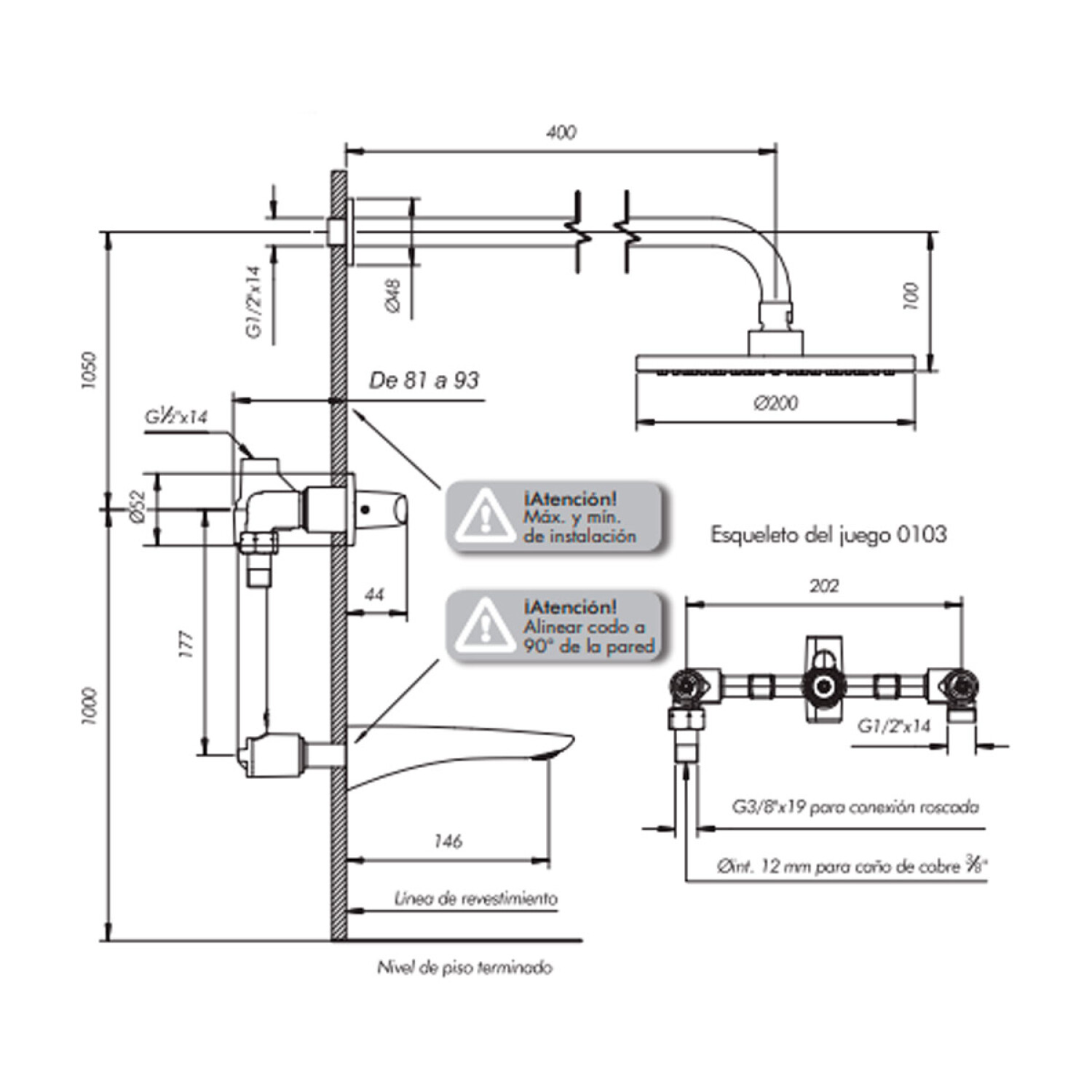 Descripcion 0103/L2-CR DUCHA EMBUTIR LINEA EPUYEN CR