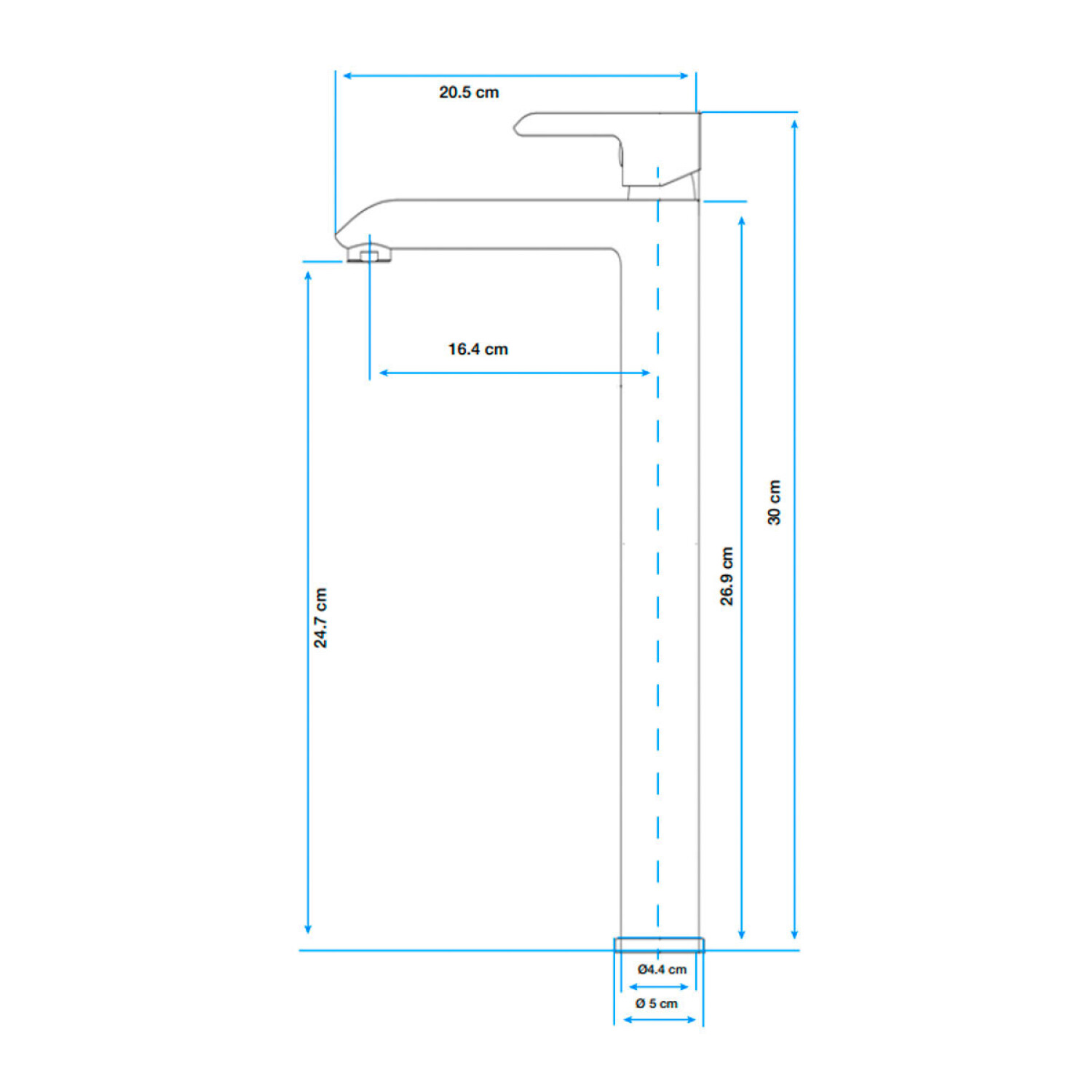 Grifería de lavatorio monocomando alto en negro mate de 25mm con apertura en frío de la serie Alassio II. Combina comodidad y estilo en tu baño.