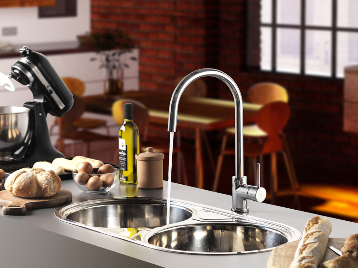 Griferia De Mesada Cocina Monocomando Cromo Fv