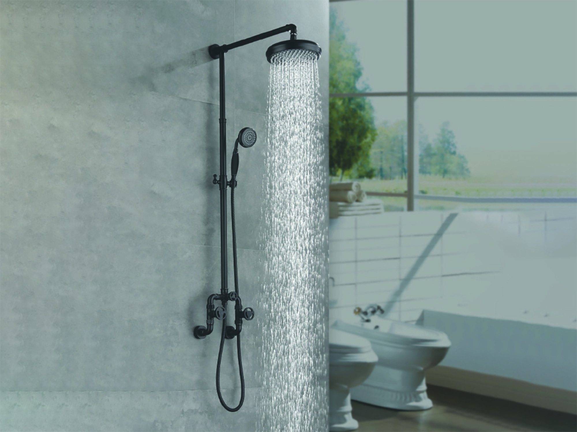 Griferia Ducha Exterior Industrial Negro Mate Aqualia