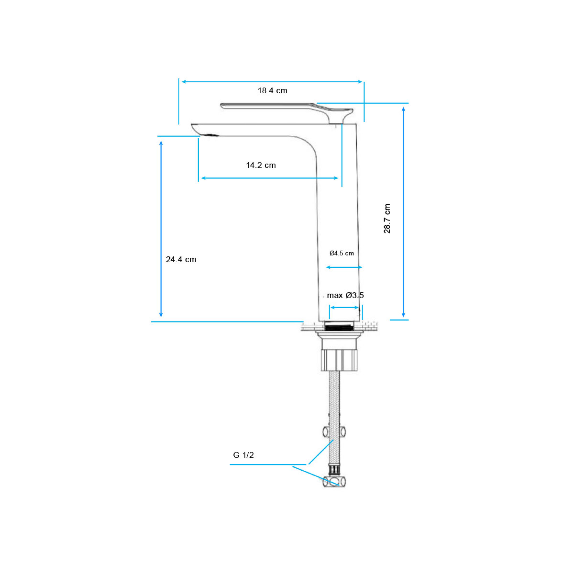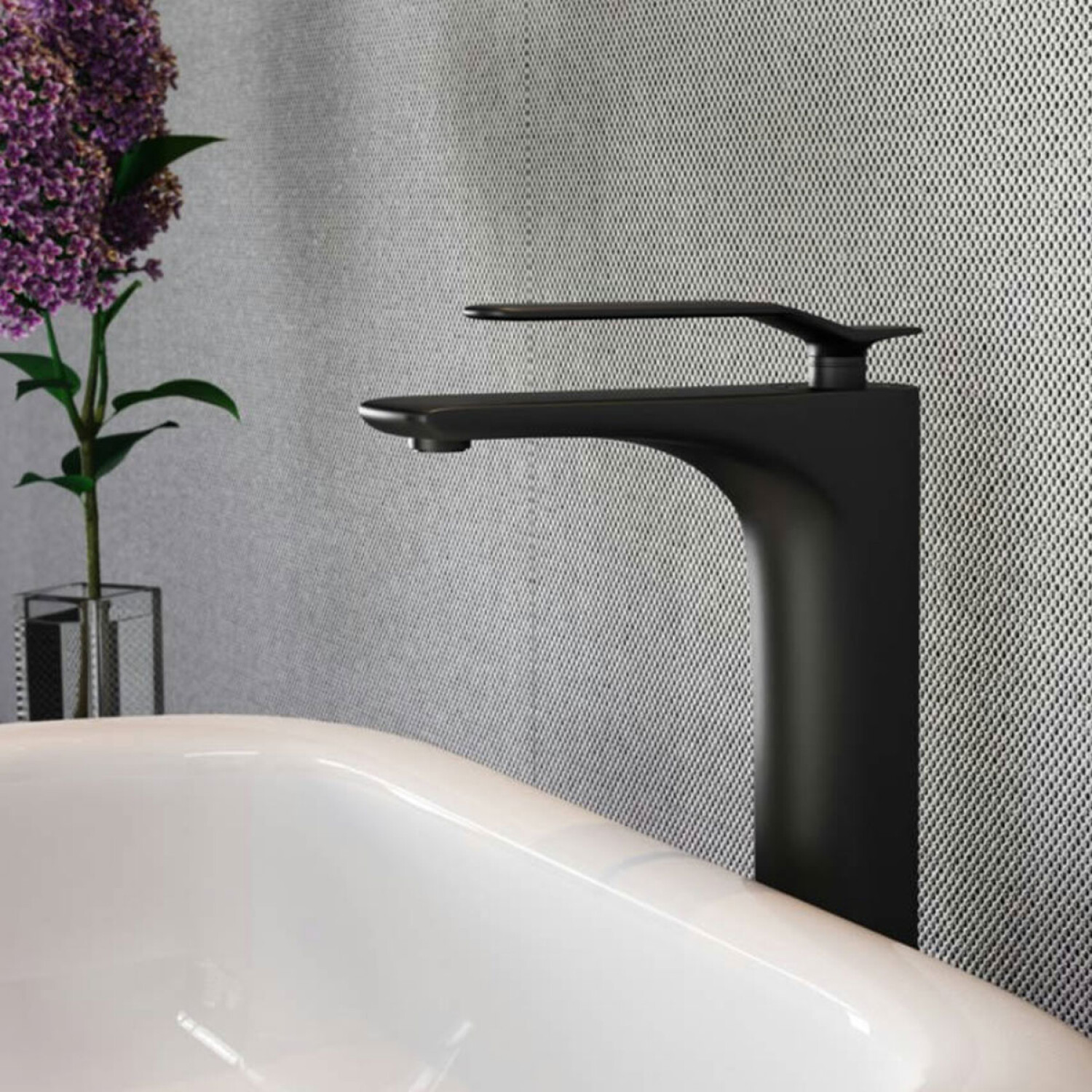 La grifería para lavatorio alto AQ518241PCS-N de la serie Módena destaca por su diseño monocomando y su acabado negro mate, ideal para baños con estilo moderno e industrial. Equipado con un cartucho de apertura en frío de 35 mm, ofrece eficiencia energética y un manejo preciso del flujo de agua. Su altura es perfecta para combinar con lavabos tipo bowl, brindando comodidad y estilo. Fabricada con materiales de alta calidad.