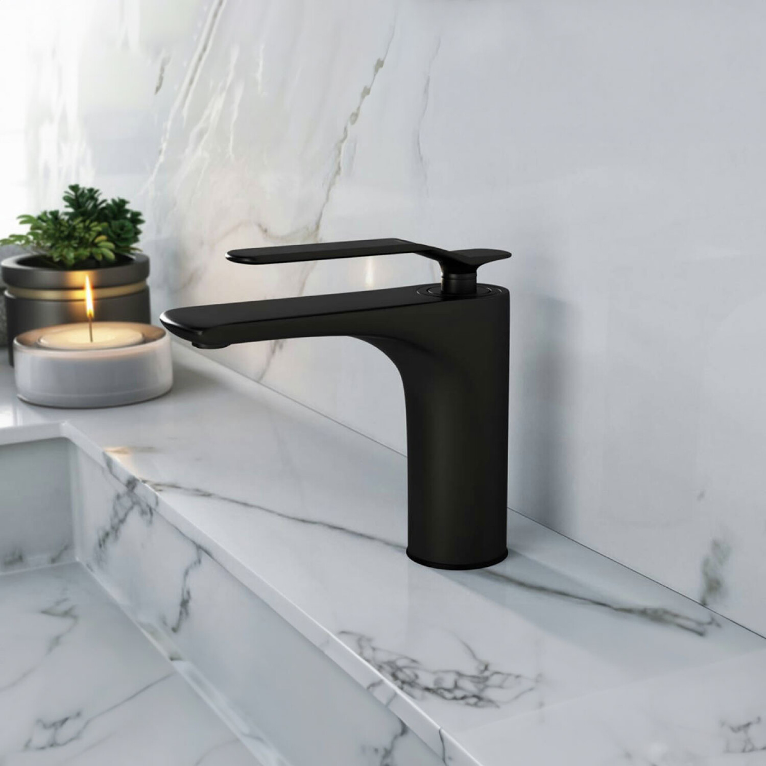 Griferia Para Lavatorio Monocomando Bajo Negro Mate Con Cartucho Ap Frio Serie Modena