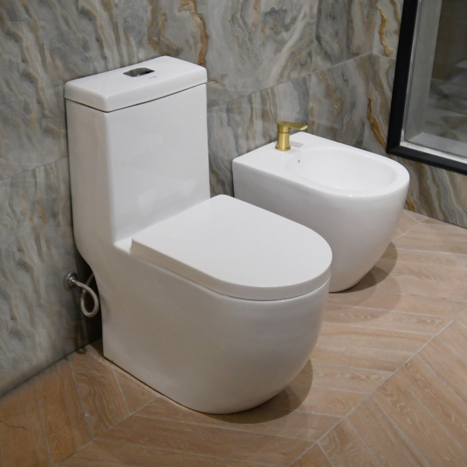 Disfruta de la máxima comodidad y eficiencia con el inodoro de una sola pieza con tapa y botón de doble descarga serie Bridal. Su diseño contemporáneo y su funcionamiento suave lo hacen ideal para cualquier baño moderno. Además, su construcción duradera y su acabado en blanco brillante añaden un toque de estilo a cualquier espacio de baño.