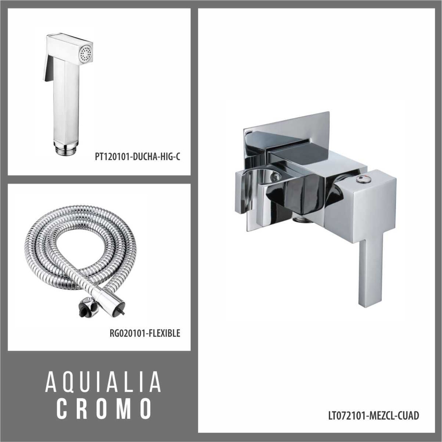 Juego Completo De Ducha Higienica Cuadrada, Mezcladora (Agua Fria Y Caliente) De Empotrar Y Flexible De Acero Inox. Aqualia