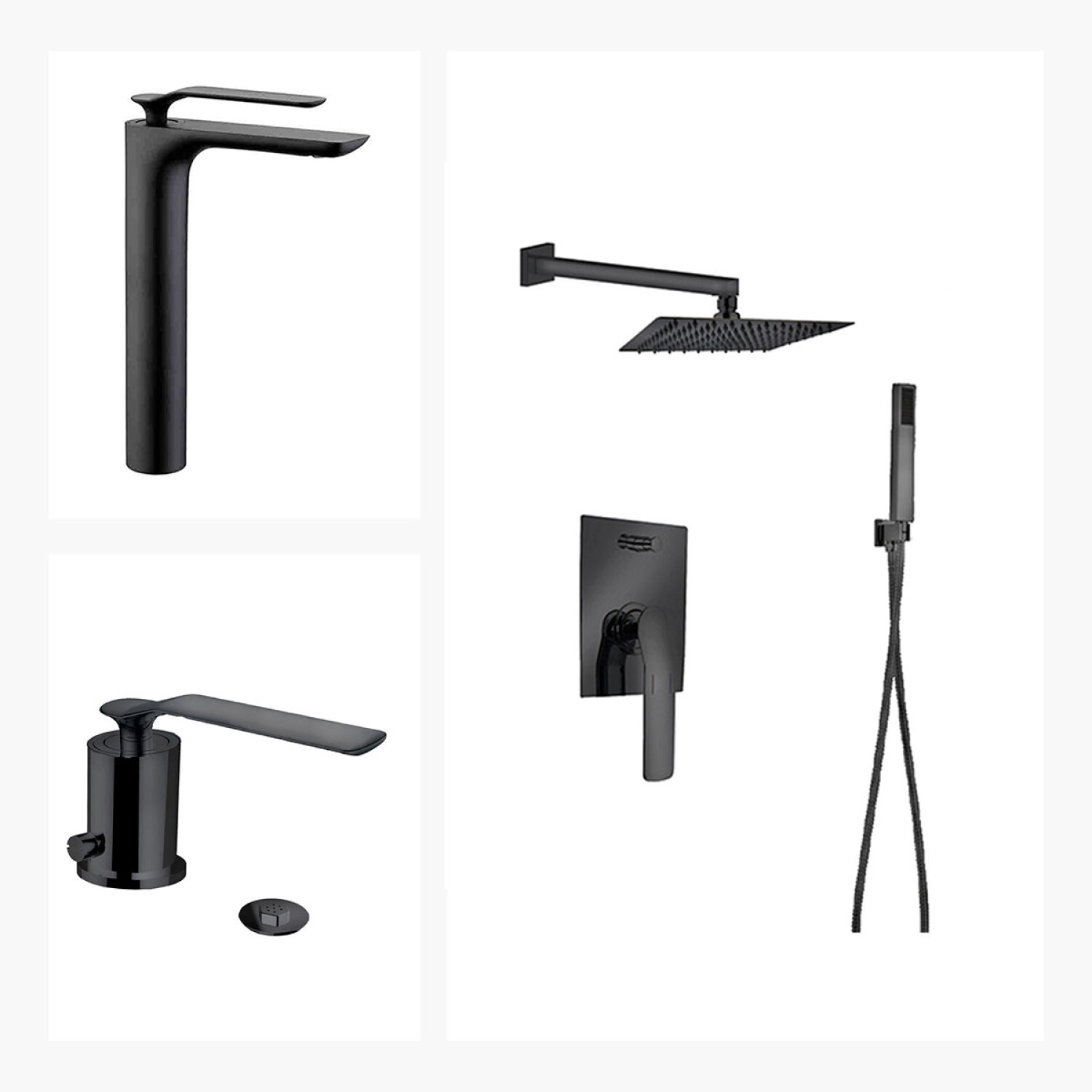 El juego de grifería Modena de Aqualia es una opción completa para equipar el baño con estilo y funcionalidad. Incluye una ducha embutida, un grifo de lavatorio alto y un bidet con transferencia, todos en acabado negro mate. Este set es perfecto para aquellos que desean una estética unificada y moderna en su baño. Cada componente está diseñado con precisión para ofrecer un flujo de agua controlado y una operación suave. El acabado en negro mate añade un toque contemporáneo y sofisticado, ideal para baños que buscan una apariencia elegante y coherente.