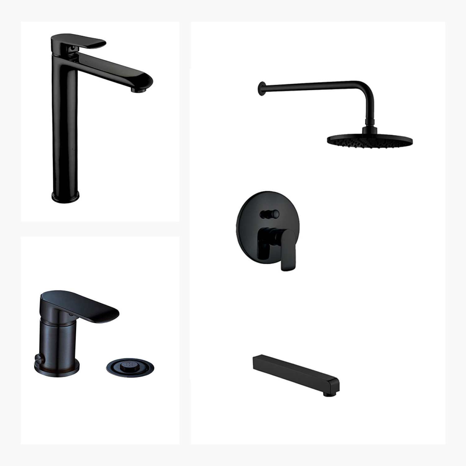 Juego Completo De Griferia Para Baño, Incluye Lavatorio Alto Apertura En Frio, Bidet Y Ducha De Embutir, Negro Mate, Linea Alass