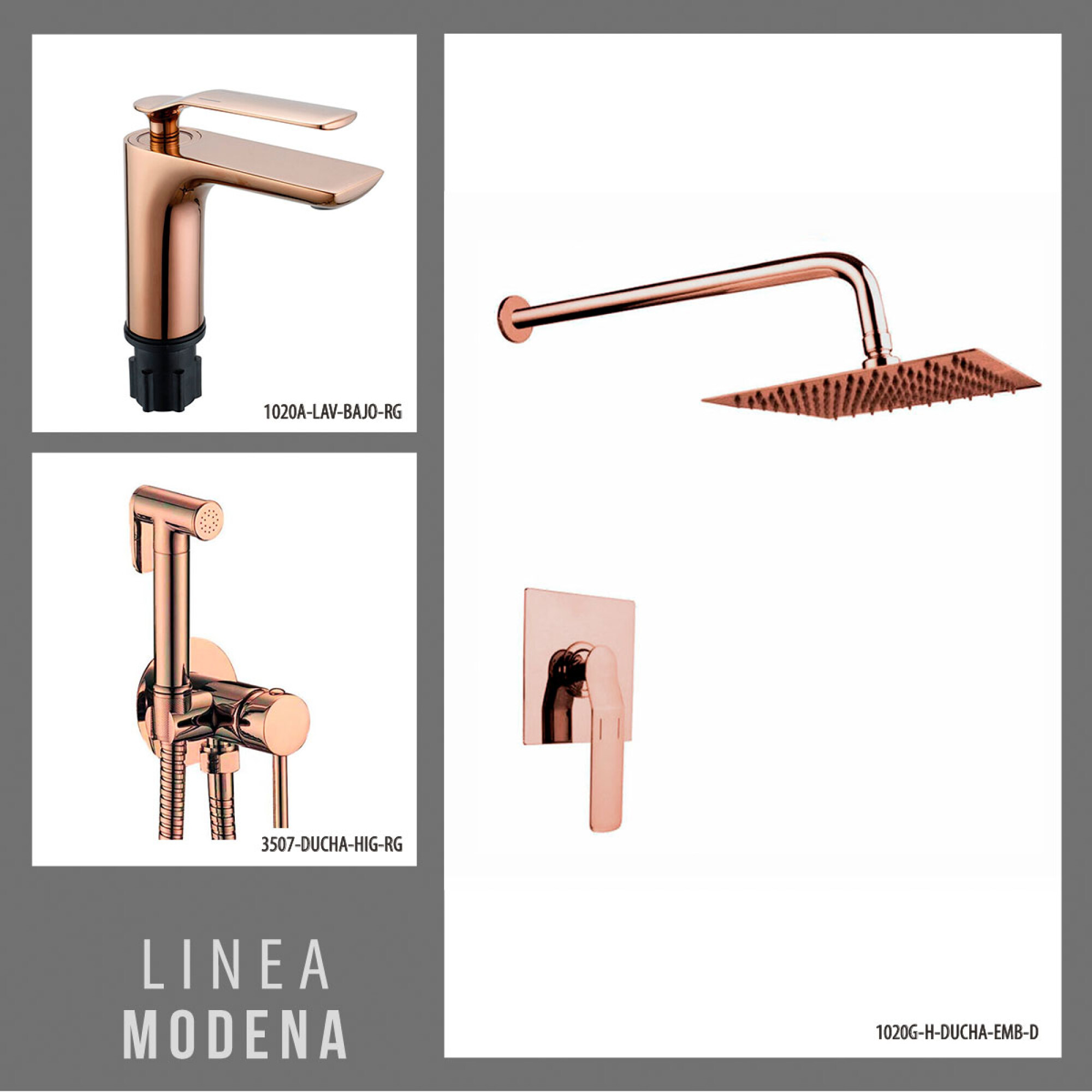 Juego Completo De Griferia Rose Gold, Incluye Lav. Bajo,ducha Embutida Y Ducha Higienica Linea Modena