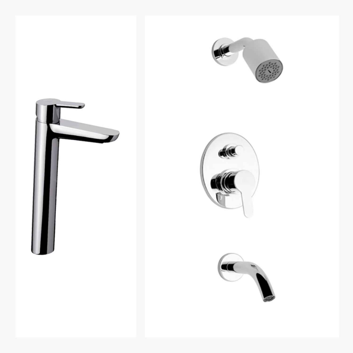 Juego De Griferia, Incluye Ducha Embutida Con Transferencia Y Lavatorio Alto Linea Puelo Fv