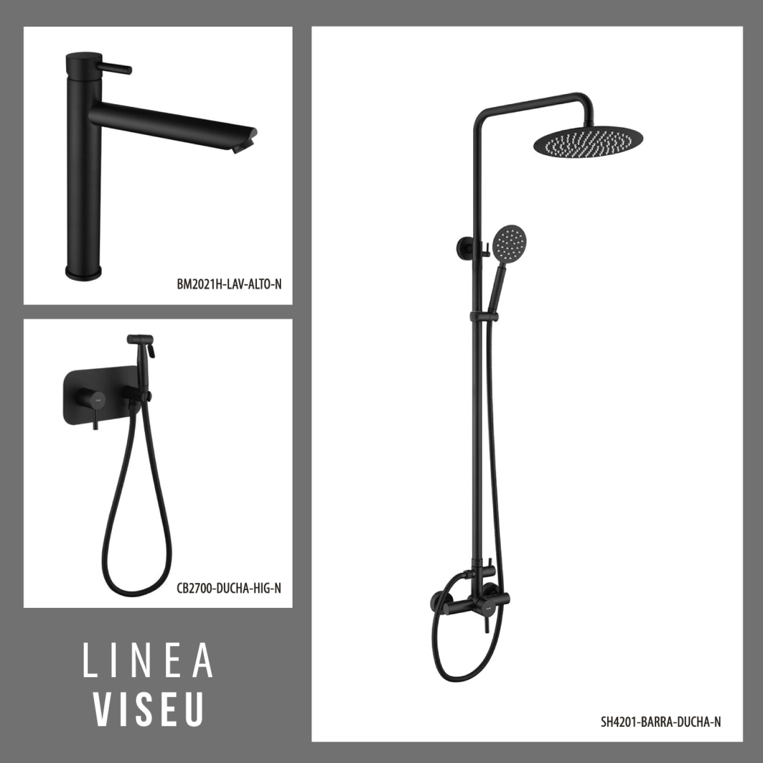 Descripcion BARRAL DE DUCHA - LAVATORIO ALTO - DUCHA HIGIENICA NEGRO LINEA VISEU
