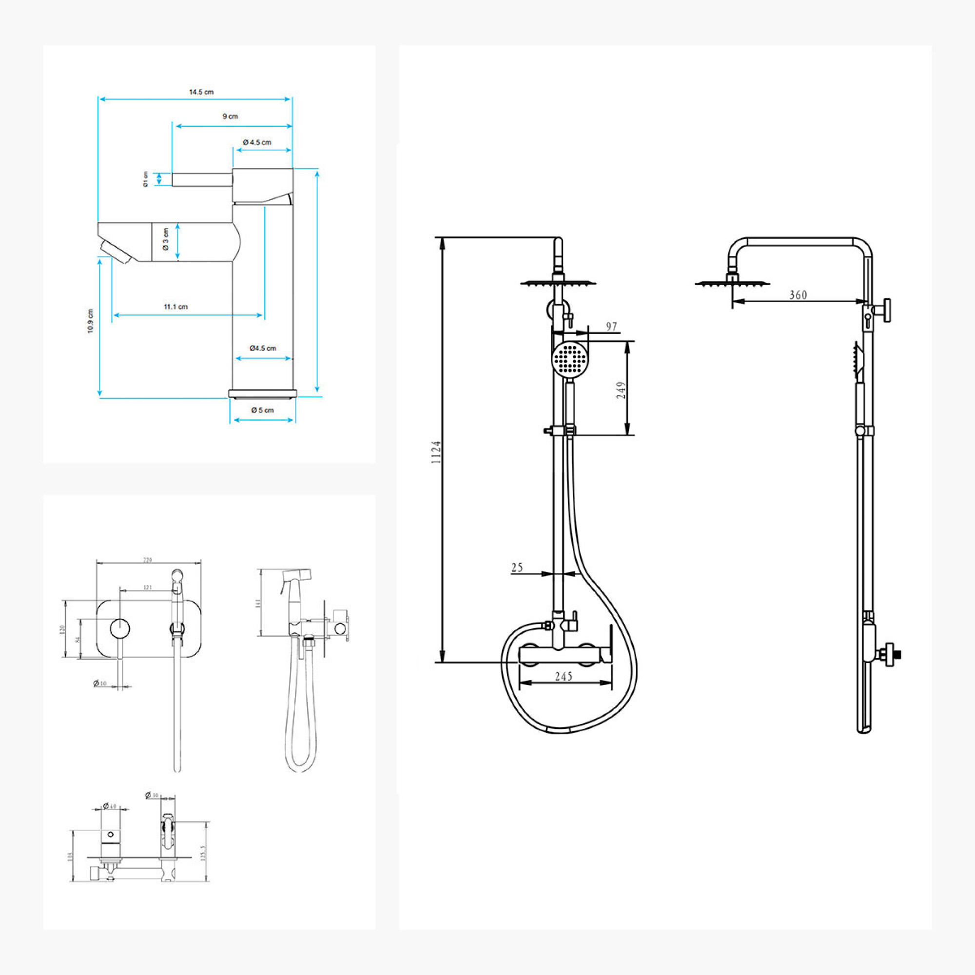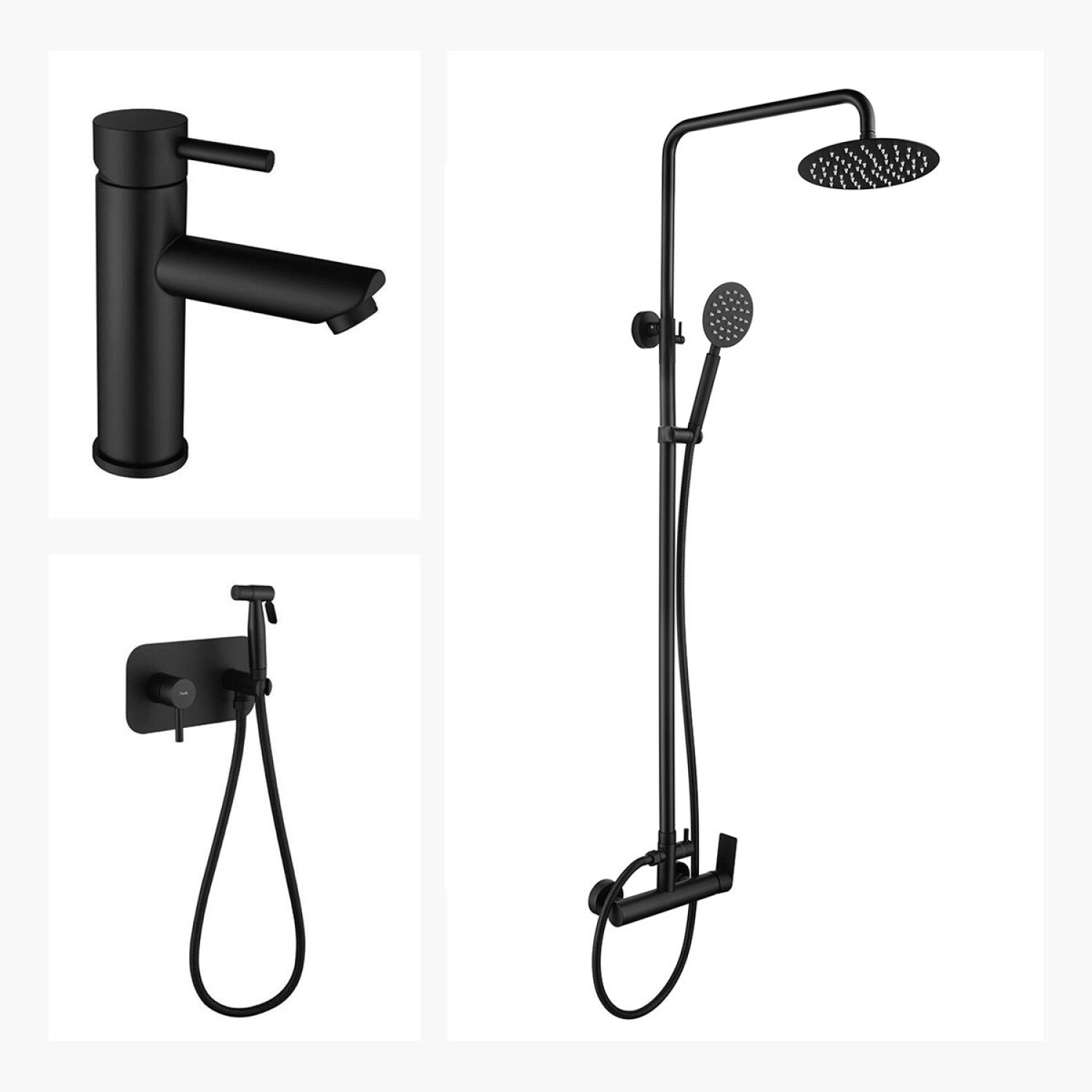 Juego De Griferia Negro Barral De Ducha Lavatorio Bajo Y Ducha Higienica