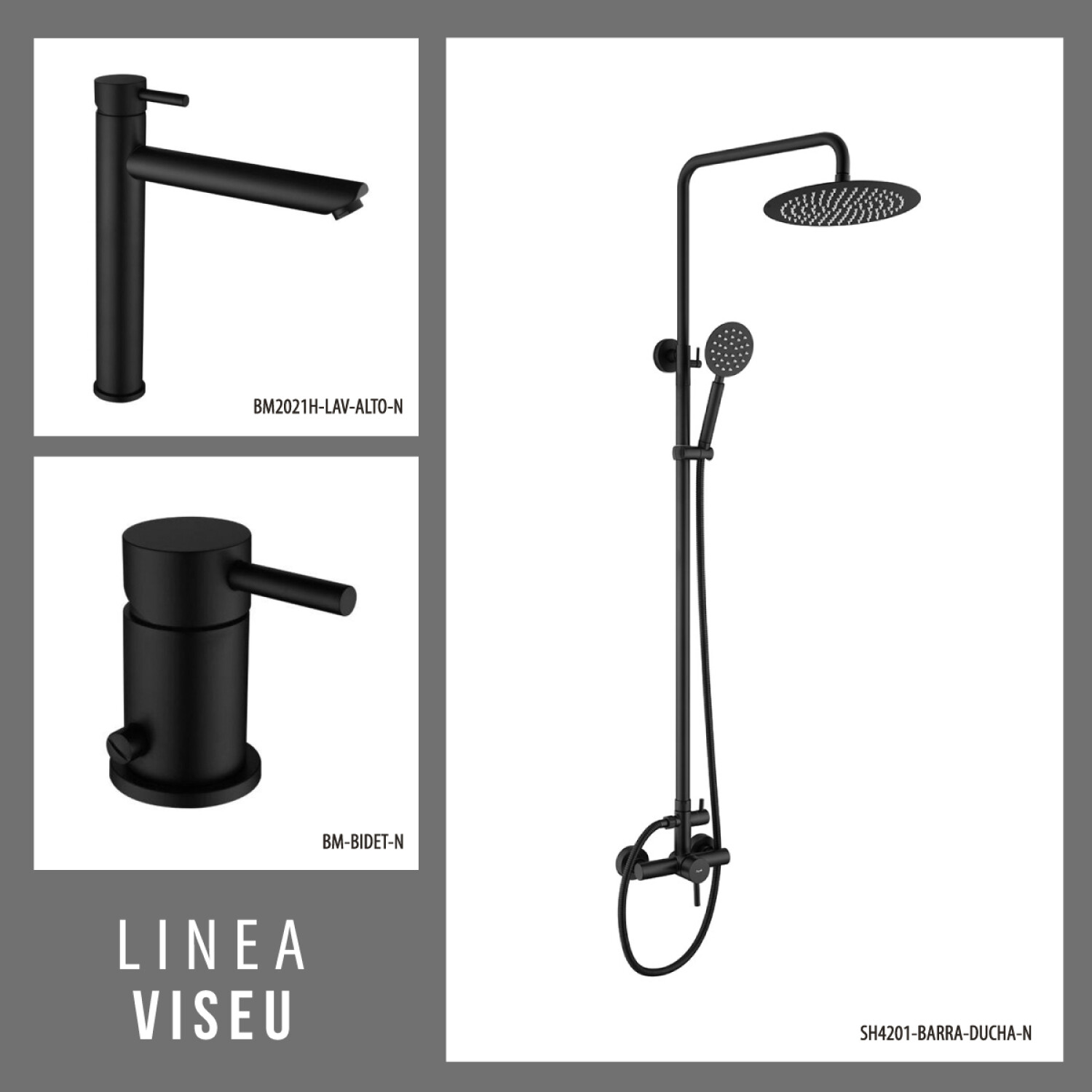 Descripcion BARRAL DE DUCHA - GRIFERIA ALTA - BIDET NEGRO LINEA VISEU