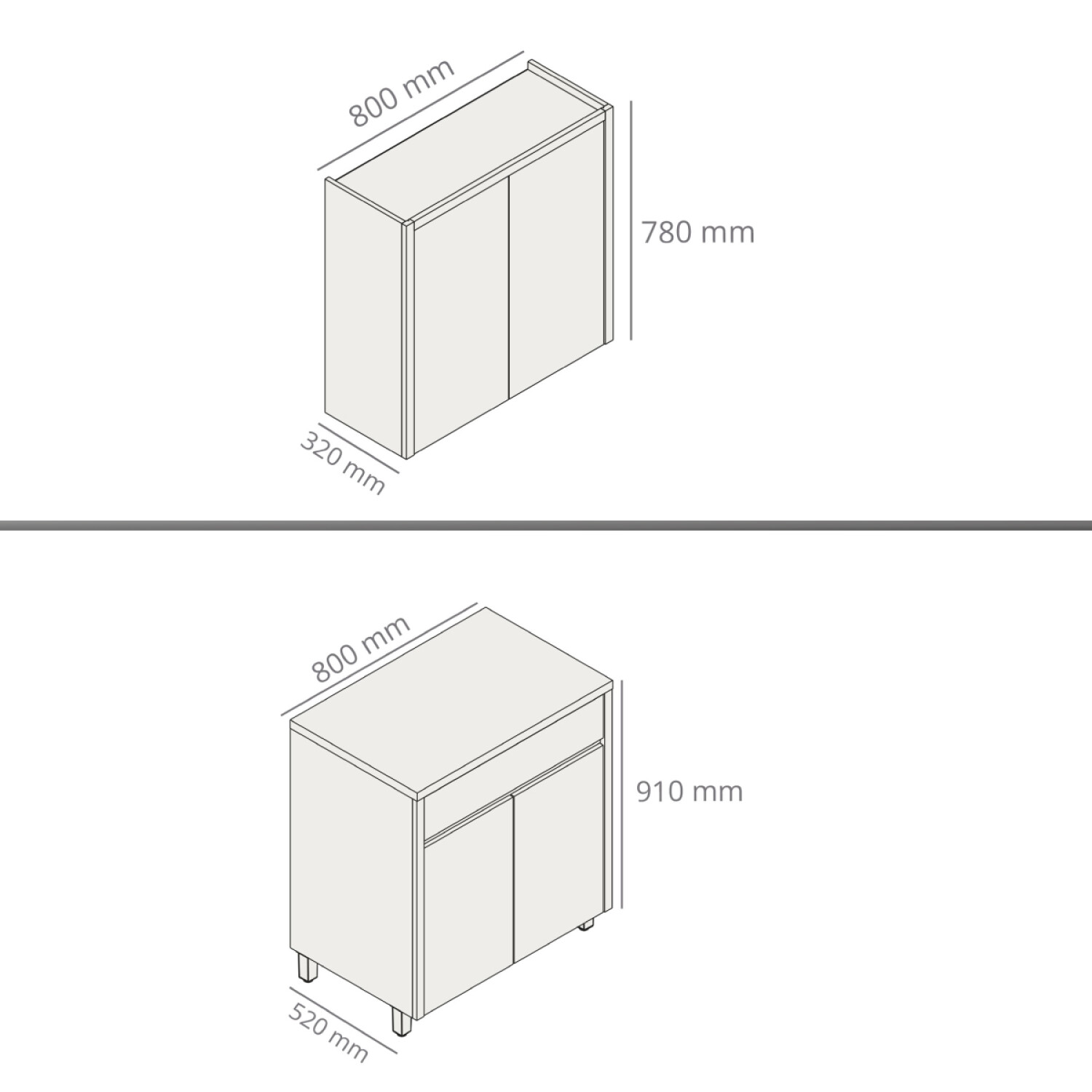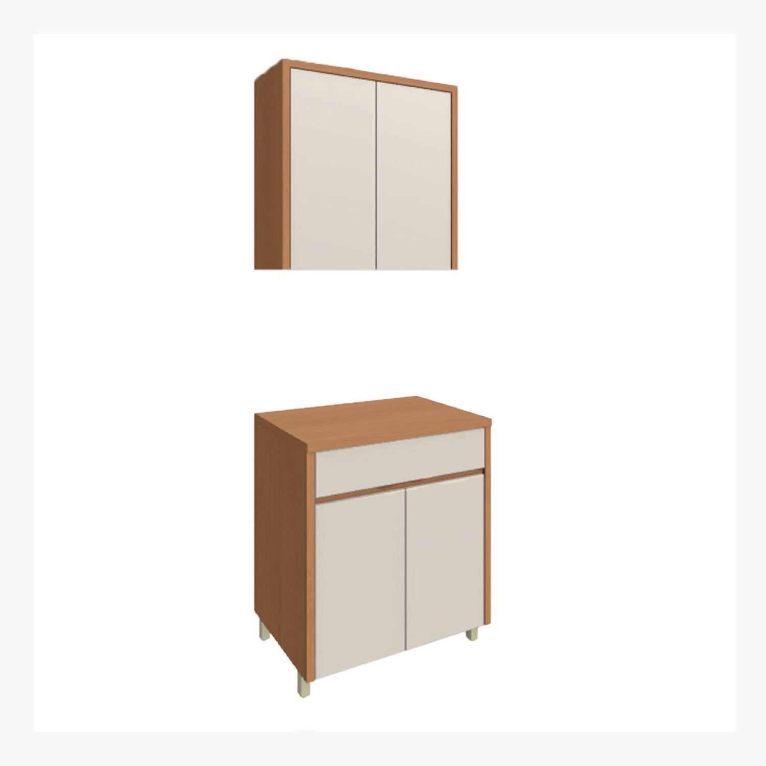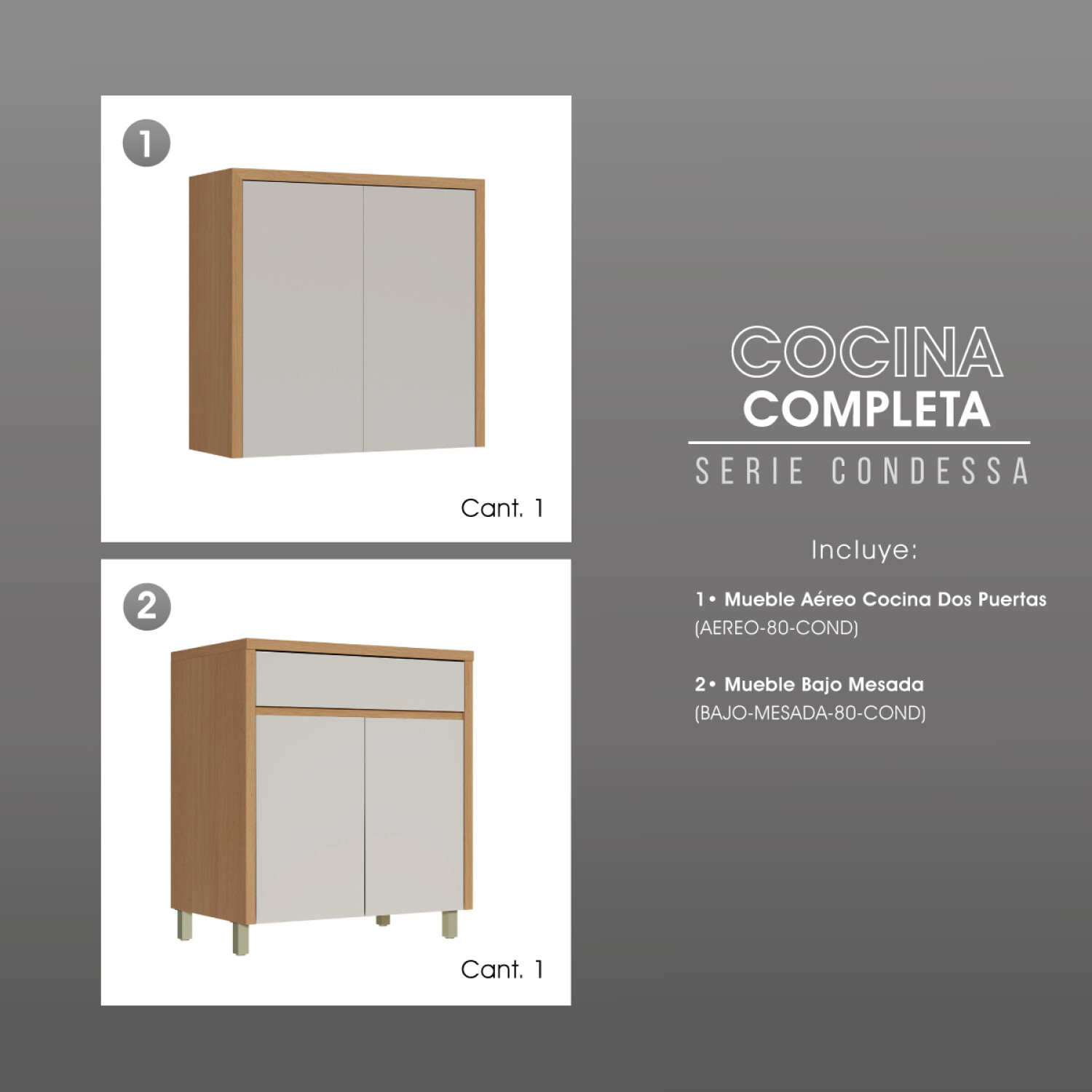El juego modular Condessa B incluye un aéreo de 80 cm con dos puertas y un bajo mesada de 80 cm, ofreciendo un set práctico para cocinas pequeñas o medianas que busquen optimizar almacenamiento y diseño uniforme. Fabricado en MDF con terminación beige, aporta calidez y luminosidad, combinando con mesadas de madera, blancas o cementos. El aéreo permite organizar vajilla o alimentos secos, mientras el bajo mesada brinda espacio para ollas, sartenes y utensilios de limpieza, garantizando orden y funcionalidad. Su diseño recto y minimalista se adapta a estilos nórdicos, clásicos renovados o modernos. Fabricado por Nesher con herrajes apertura suave, asegura estructura robusta y estética en proyectos residenciales o modulares que prioricen practicidad y diseño en un solo set.