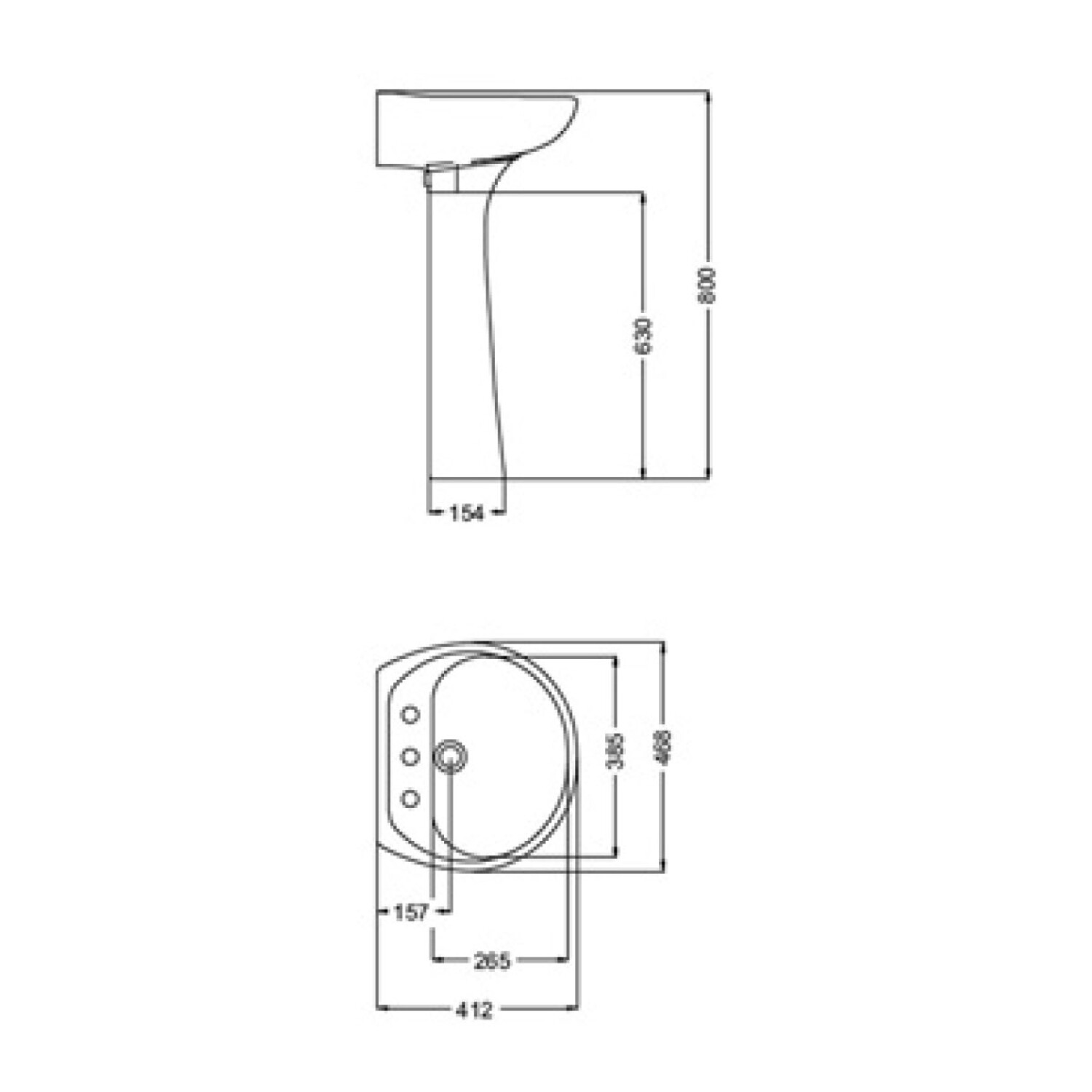 Lavatorio Andina Blanco Brillo 1 Agujero Para Pedestal