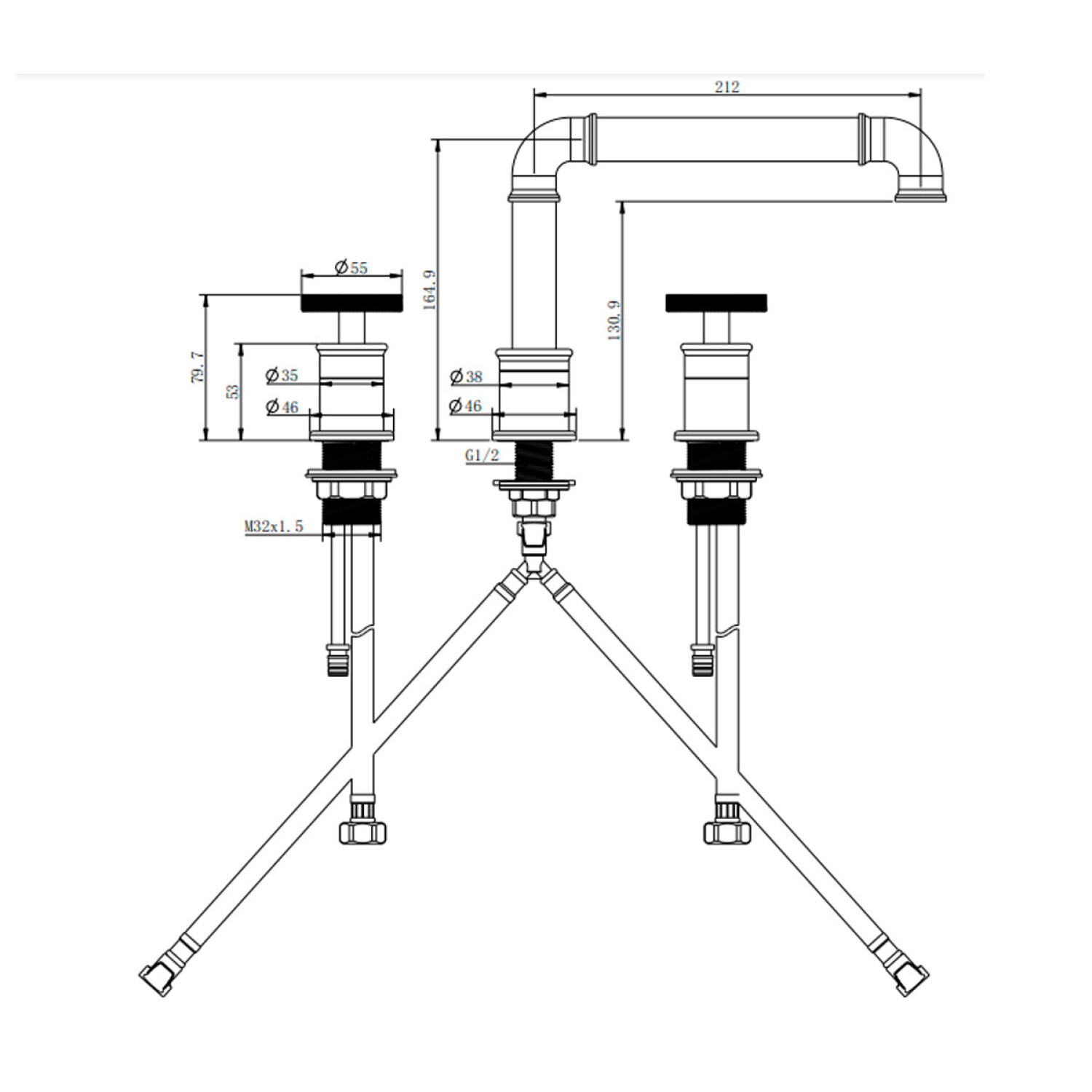 El grifo bimando para lavatorio industrial negro mate Trivecca es una pieza robusta y elegante, ideal para baños de estilo industrial o contemporáneo. Su diseño con dos mandos independientes permite un control preciso de la temperatura y el flujo de agua, ofreciendo una experiencia funcional y eficiente. Perfecto para espacios comerciales, industriales o residenciales que buscan una pieza de alta calidad con un toque moderno y sofisticado.
