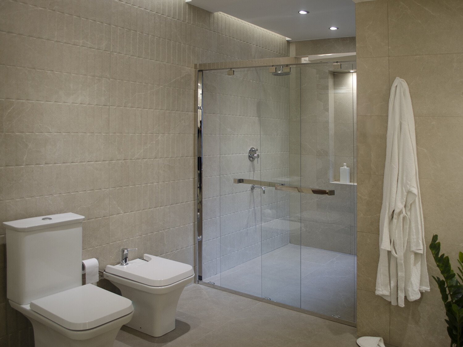 Descripcion AQ67786-GL 150X200 MAMPARA SIMPLE REGULABLE 8 MM TRANSP PERFIL AC INOX