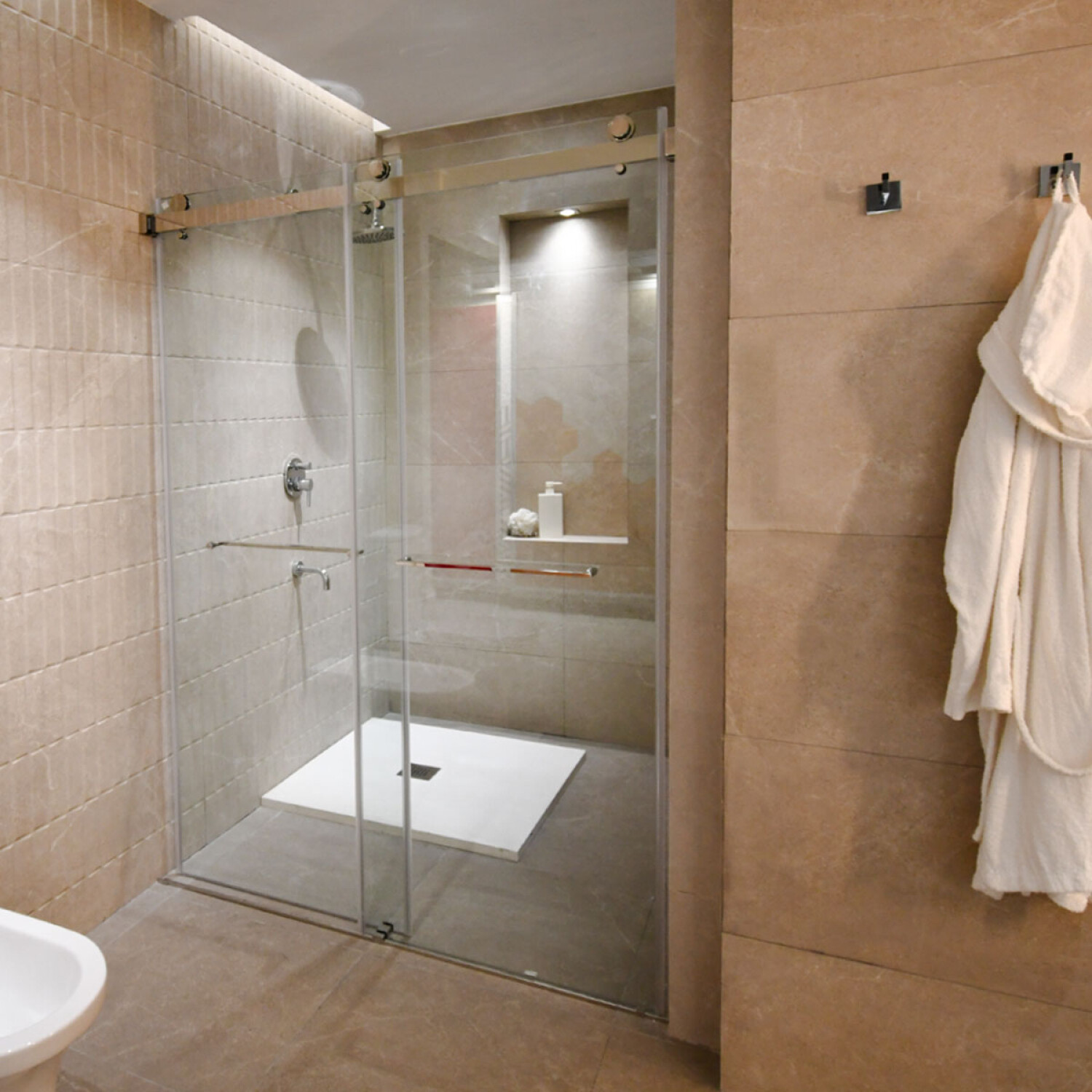 Ideal para quienes buscan amplitud y elegancia en su baño, esta mampara de vidrio templado de 8 mm y medidas 140x200 cm cuenta con perfiles de aluminio cromado de la serie Warren. Su diseño de líneas limpias aporta modernidad y maximiza la luminosidad del espacio. Los materiales resistentes al agua y al óxido prolongan su vida útil. Recomendable para duchas de gran tamaño, brindando confort, seguridad y un acabado de alta gama que eleva la estética del ambiente.