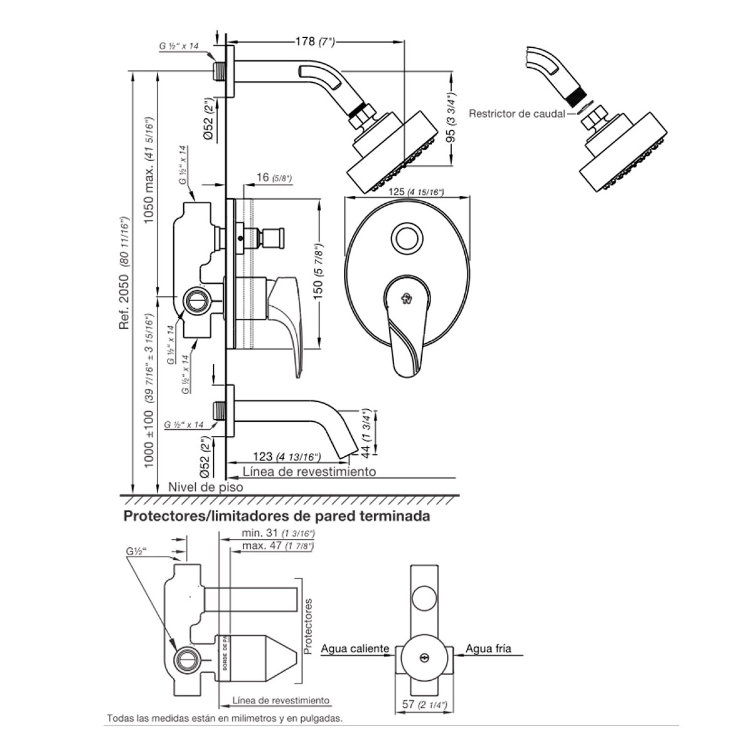 Mezclador Monocomando De Ducha Y Bañera Linea Iguazu