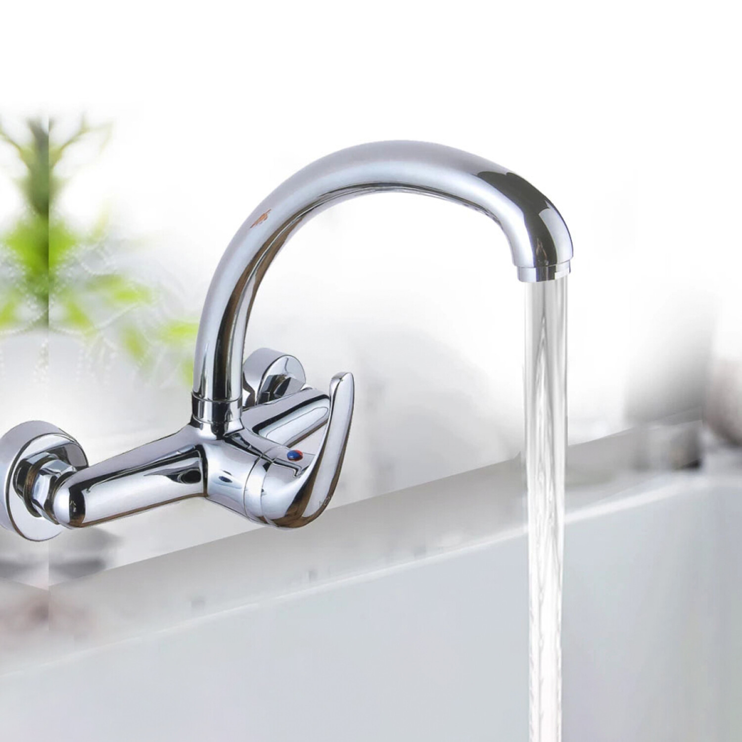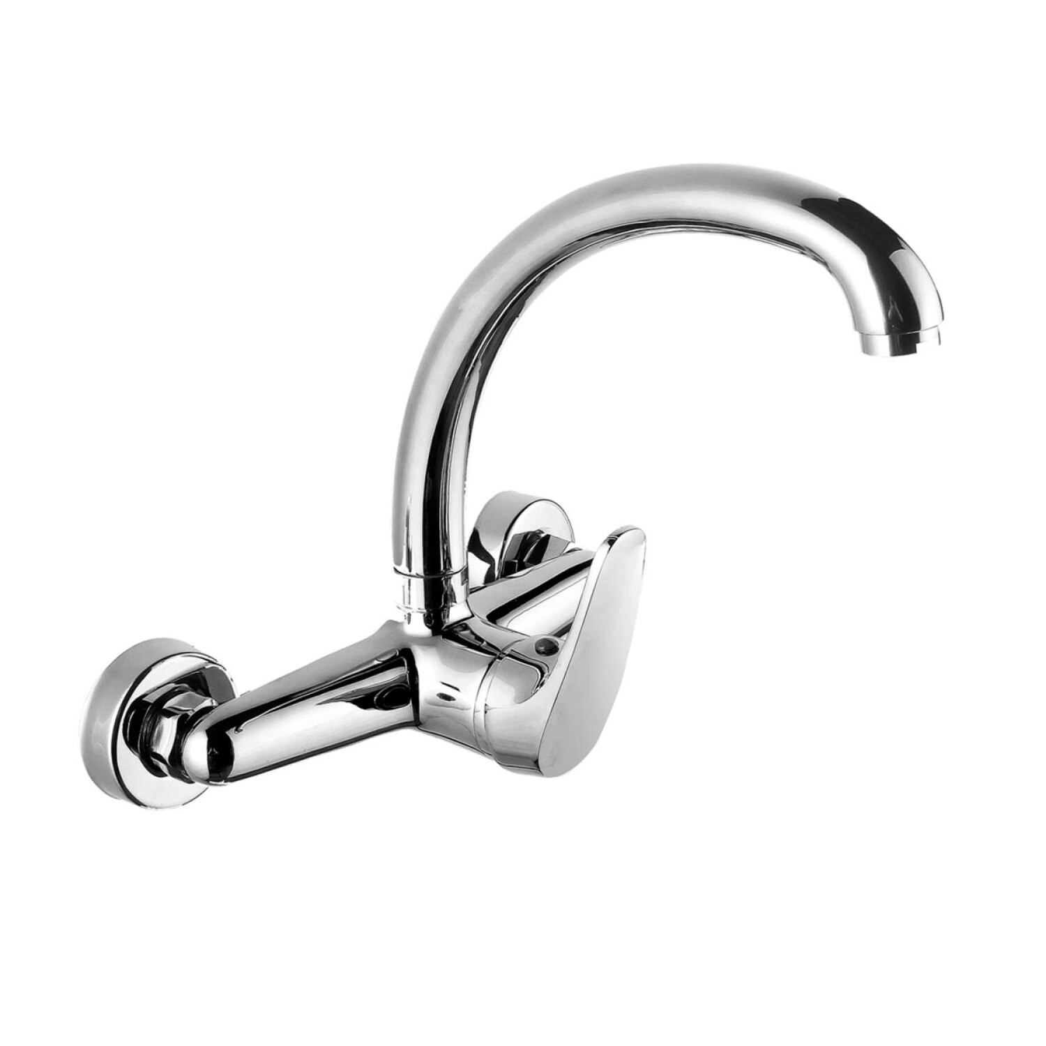 Monocomando cromado para cocina de pared con pico alto. Este grifo de cocina ofrece funcionalidad y estilo en un diseño elegante y moderno. Con control preciso del flujo y la temperatura del agua, es perfecto para cocinas contemporáneas que buscan un toque de sofisticación.