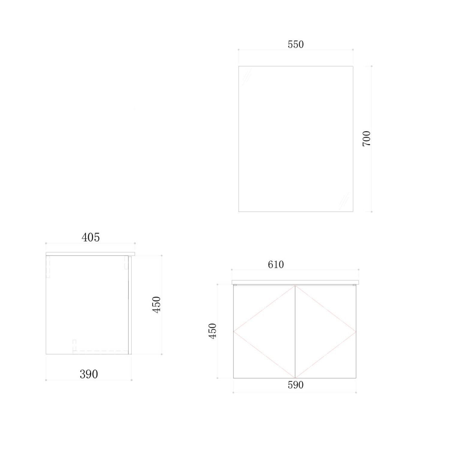 Descripcion DG3025924-GO + DG3125926-W + DG322592-GL MUEBLE DE BAÑO 61x40x45 MDF GRIS OSCURO - INCL BACHA LOZA Y ESPEJO