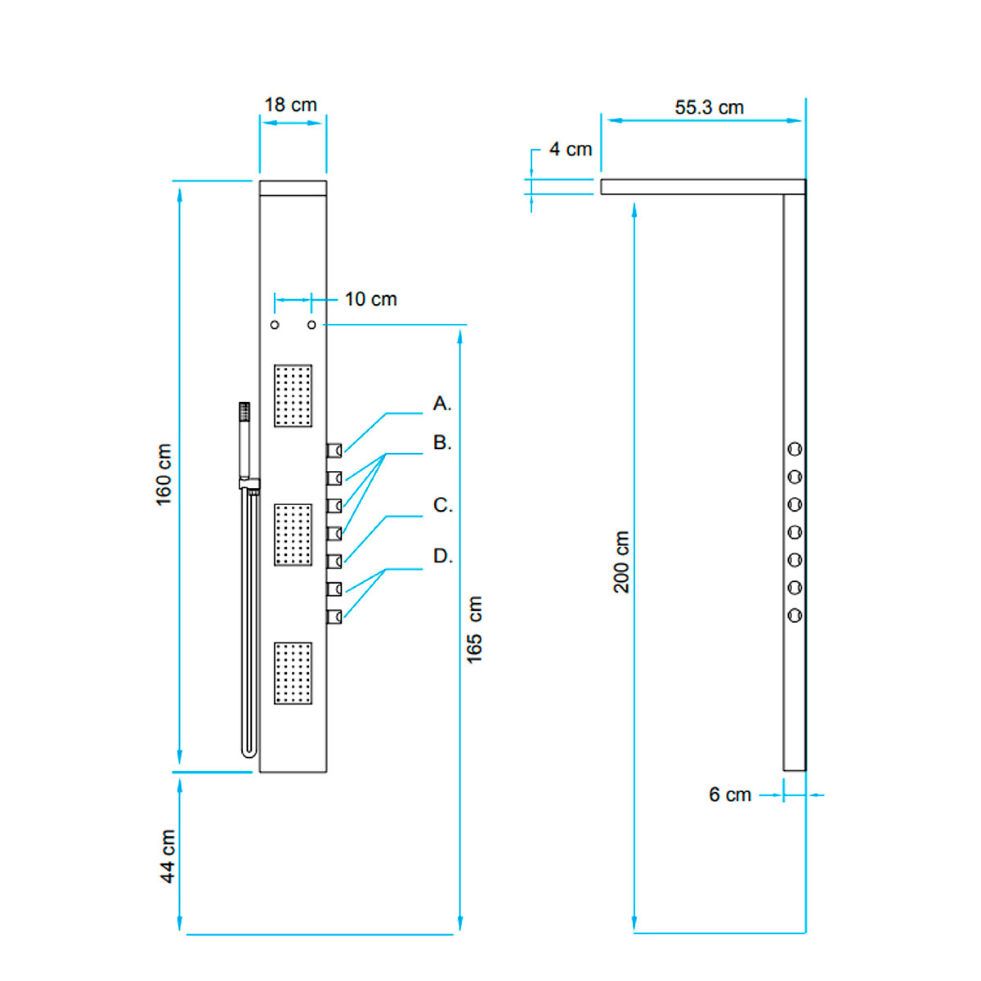 Panel De Ducha Con Hidromasaje Aqualia, Requiere Min 3.0Kg/cm2 Presion Agua