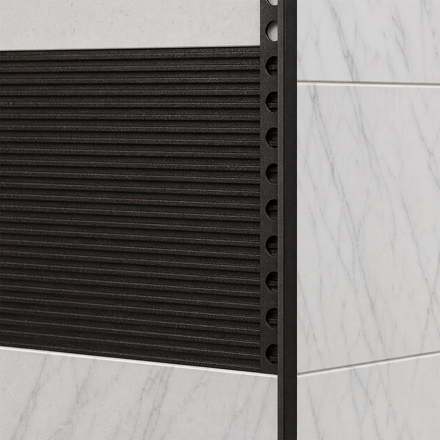 Perfil de Aluminio en L Ebano Alumacer - Este perfil de aluminio en forma de L en color ébano es perfecto para crear contrastes y delimitar espacios en tus revestimientos. Su diseño moderno y su resistencia lo hacen ideal para cualquier aplicación.