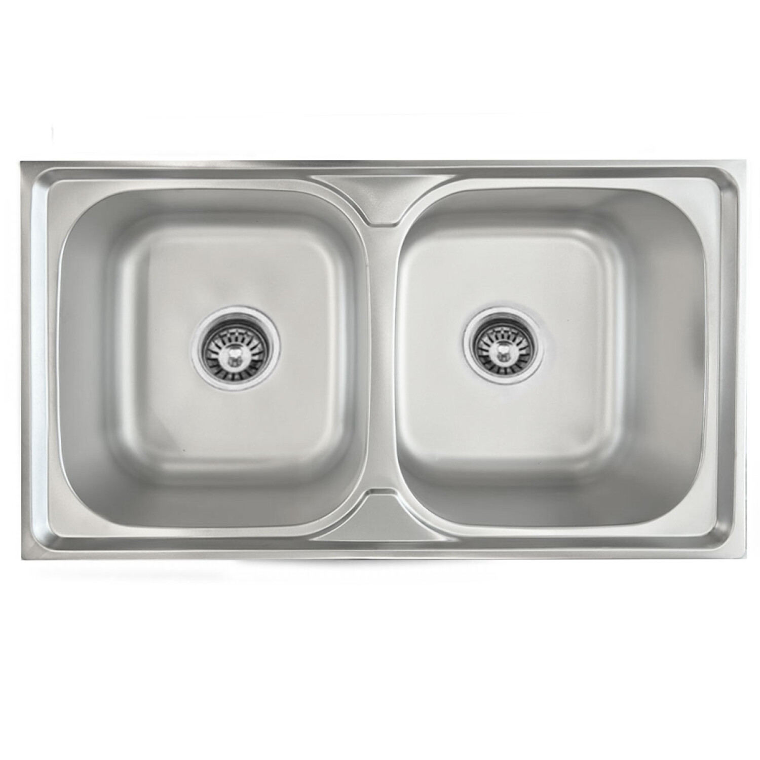 Pileta doble de cocina de acero inoxidable satinado con dimensiones de 78x42x21cm y un espesor de 0.8mm. Esta pileta de la línea DGC ofrece durabilidad y resistencia, además de un diseño elegante que complementa cualquier estilo de cocina. Con su capacidad para dos lavados simultáneos, es ideal para cocinas residenciales y comerciales que requieren un alto rendimiento.
