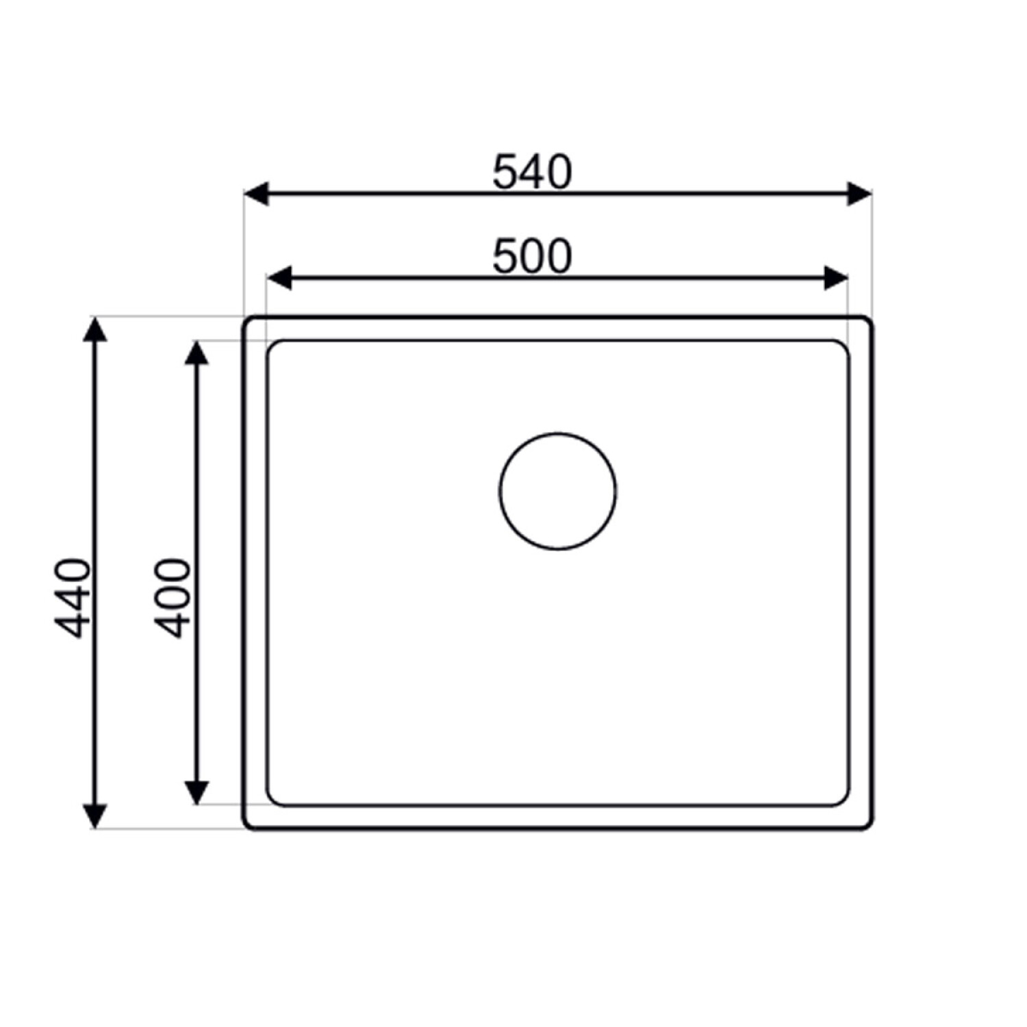 Descripcion SH 40x50x22.8cm PILETA SIMPLE R15 1.20MM C/DESAGUE Y VALVULA SATIN BRUSHED