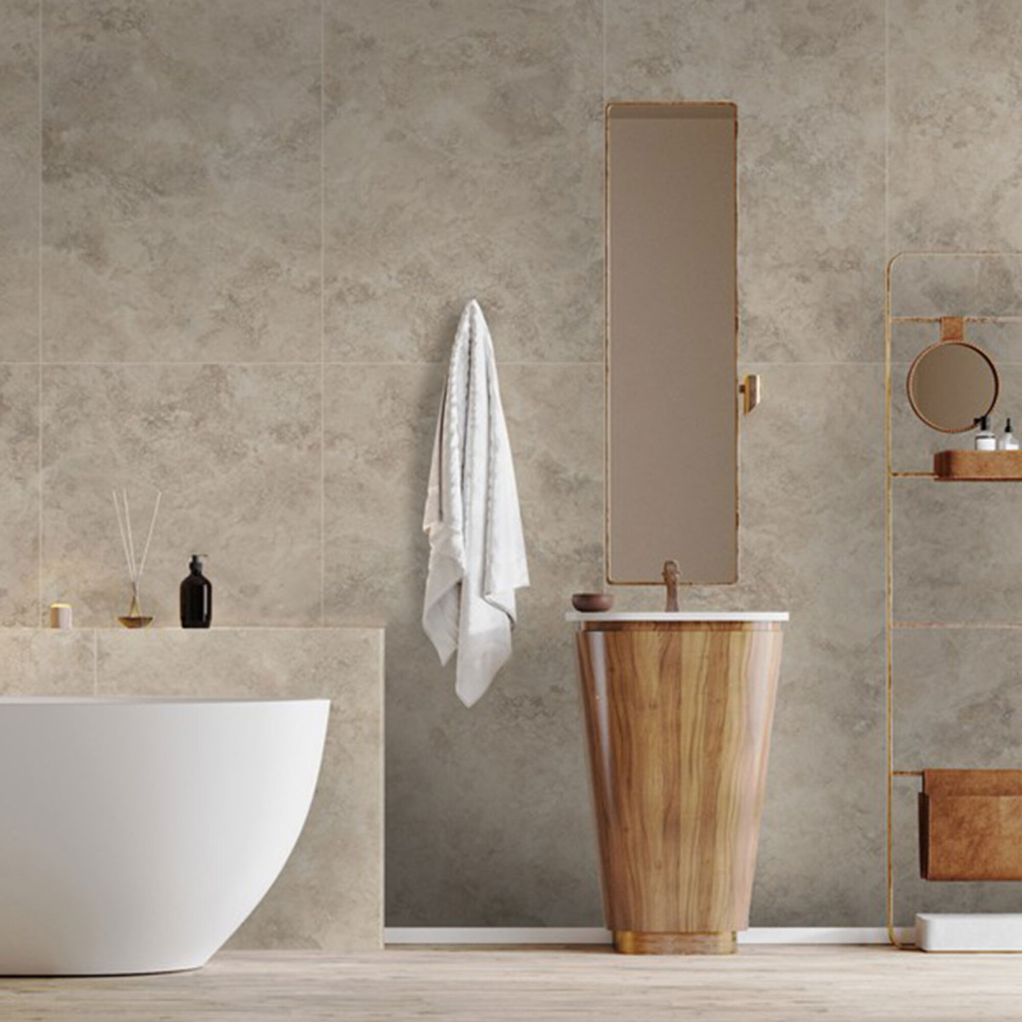 El porcelanato Carso Beige 80x160 cm de Vite combina un formato extra grande con un tono beige neutro y refinado, ideal para crear espacios de estilo contemporáneo y elegante. Su acabado sutilmente satinado imita la textura de la piedra natural, aportando calidez y continuidad visual. Gracias a su gran formato, generando superficies uniformes y modernas. Es perfecto para pisos o paredes de interiores amplios, aportando una sensación de lujo discreto y sofisticado, con la calidad característica de Vite.