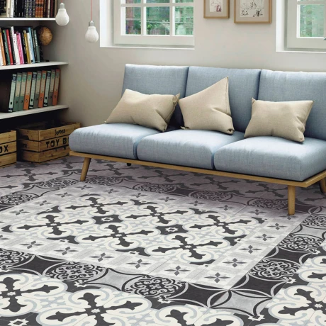 Porcelanato Hidráulico Negro Blanco 22.5X22.5Cm Piso Pared
