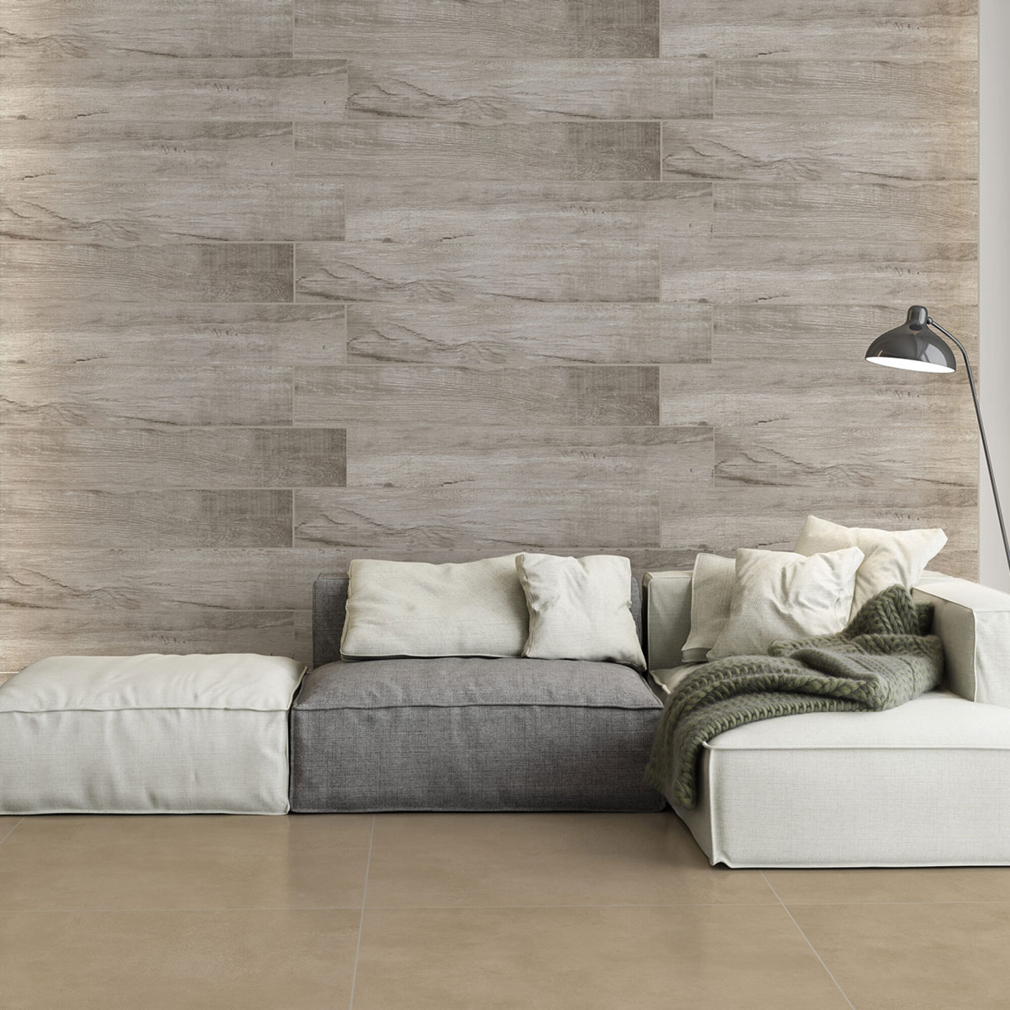 Porcelanato Maderado Gris 18X113Cm Piso Pared
