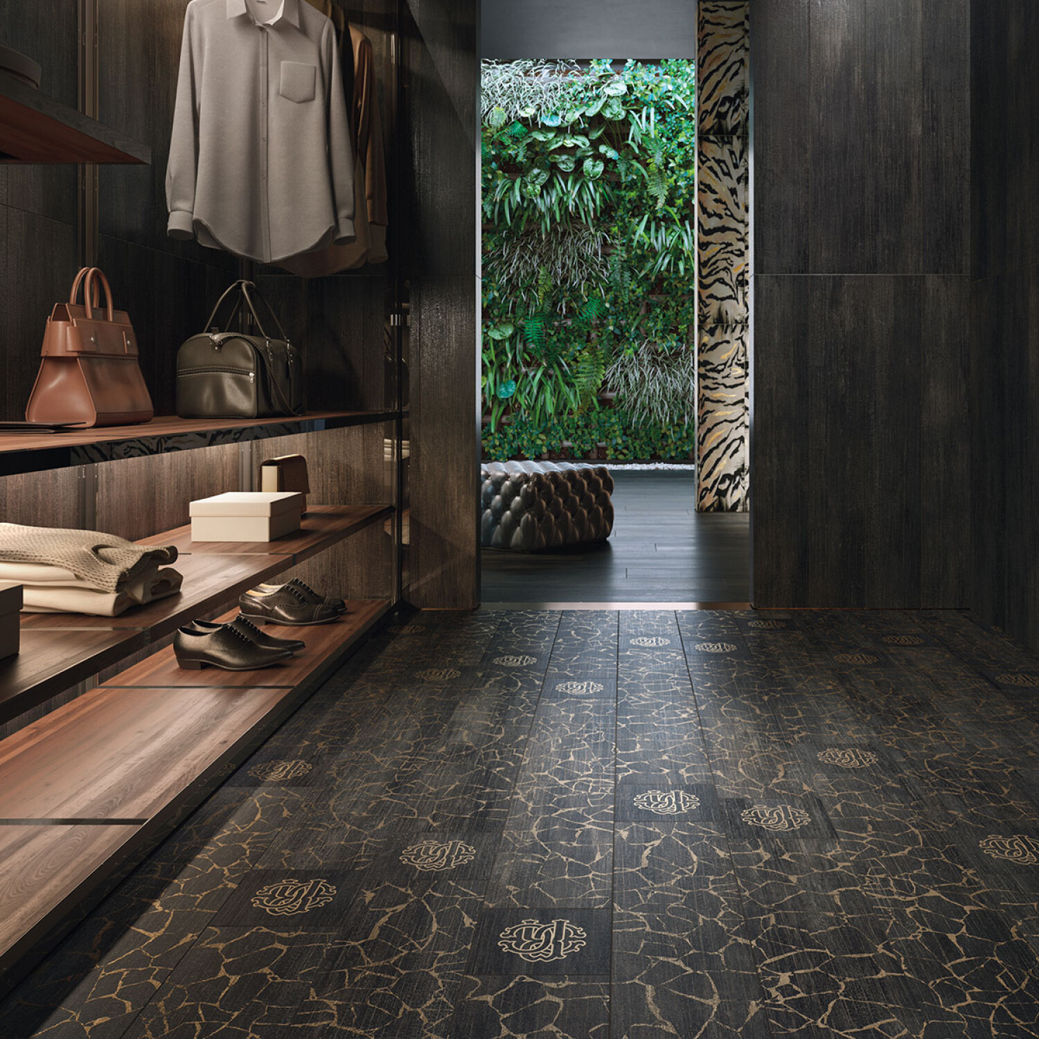 Descripcion 20X20 PORCELANATO MADERADO NEGRO ANIMAL PRINT BLANCO ROBERTO CAVALLI