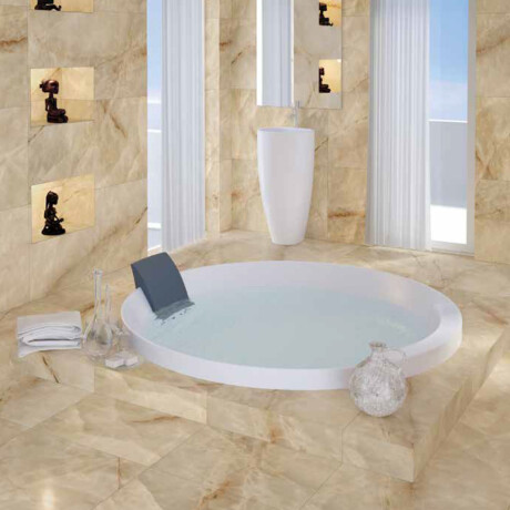 El porcelanato Full Lapatto de 60x120 cm de Majorca Ceramiche en tonos beige ofrece elegancia y calidez a cualquier espacio. Con su acabado rectificado y diseño marmolado, proporciona un aspecto sofisticado y moderno. Ideal para ambientes de alto tráfico.