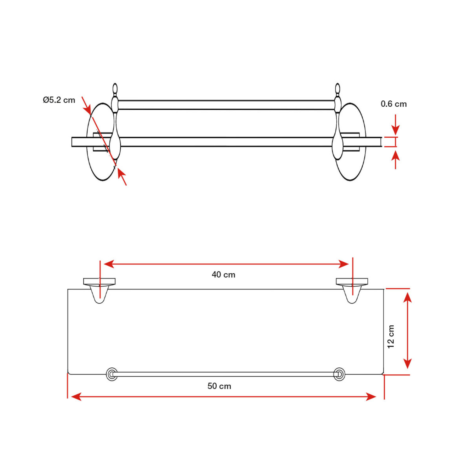 Repisa Cromada Simple Con Estante De Vidrio 50X0.6X12Cm, Instalacion Con Tornillos