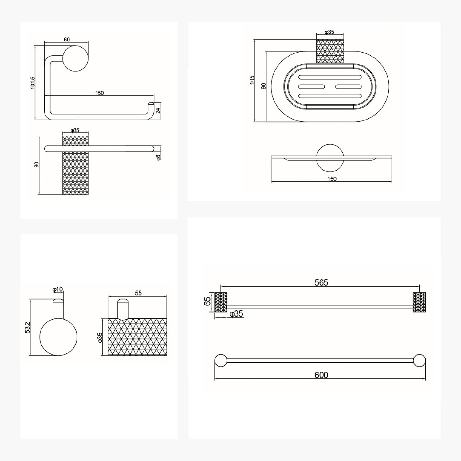 Este juego de accesorios para baño de la línea Signature de Aqualia incluye un toallero recto, dos perchas, un portarrollo y una jabonera, todos en color bronce cepillado. Con un diseño moderno y funcional, este set de accesorios añade un toque de estilo a cualquier baño. Ideal para quienes buscan complementar su baño con accesorios de calidad y diseño.