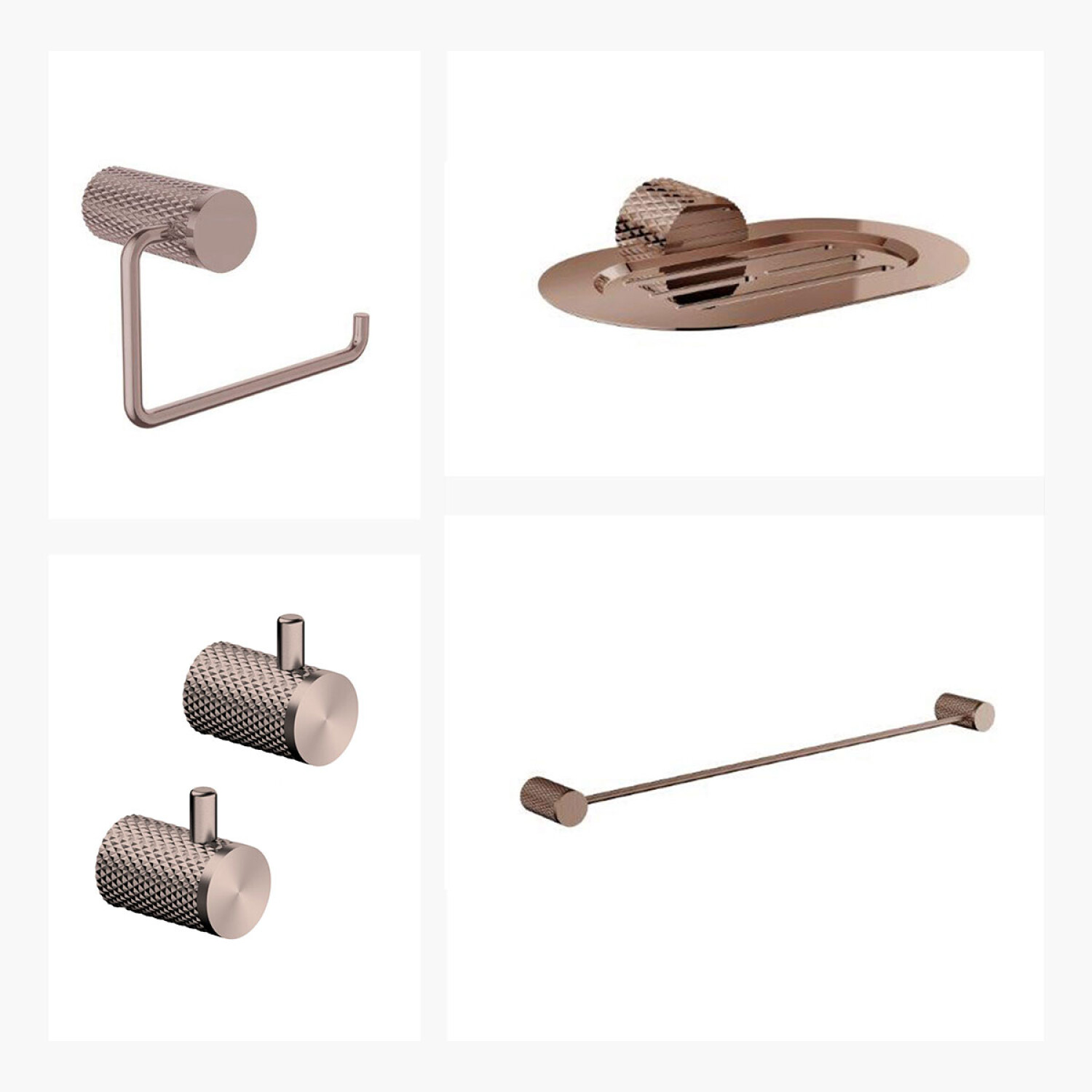 Set De Accesorios Baño Signature: Perchas, Jabonera Y Más, Bronce.