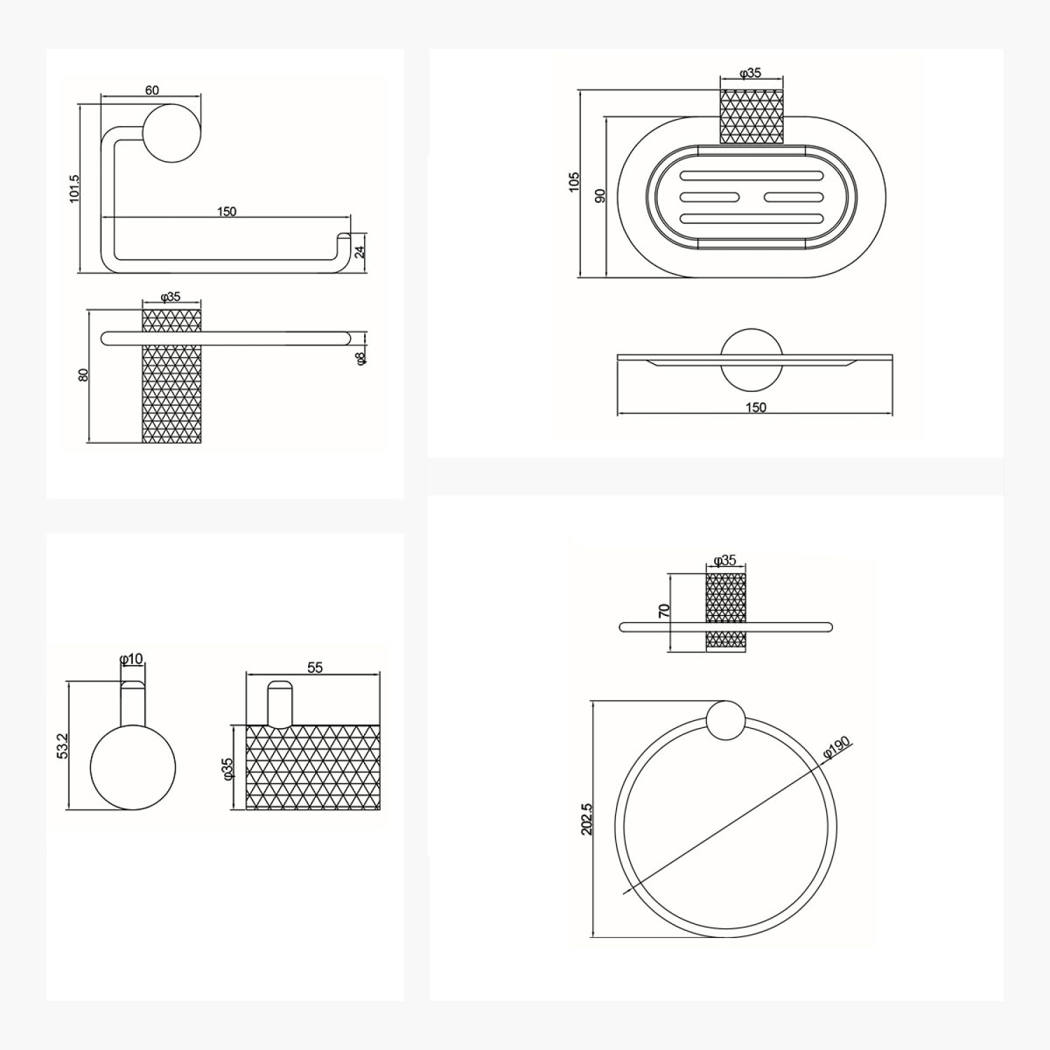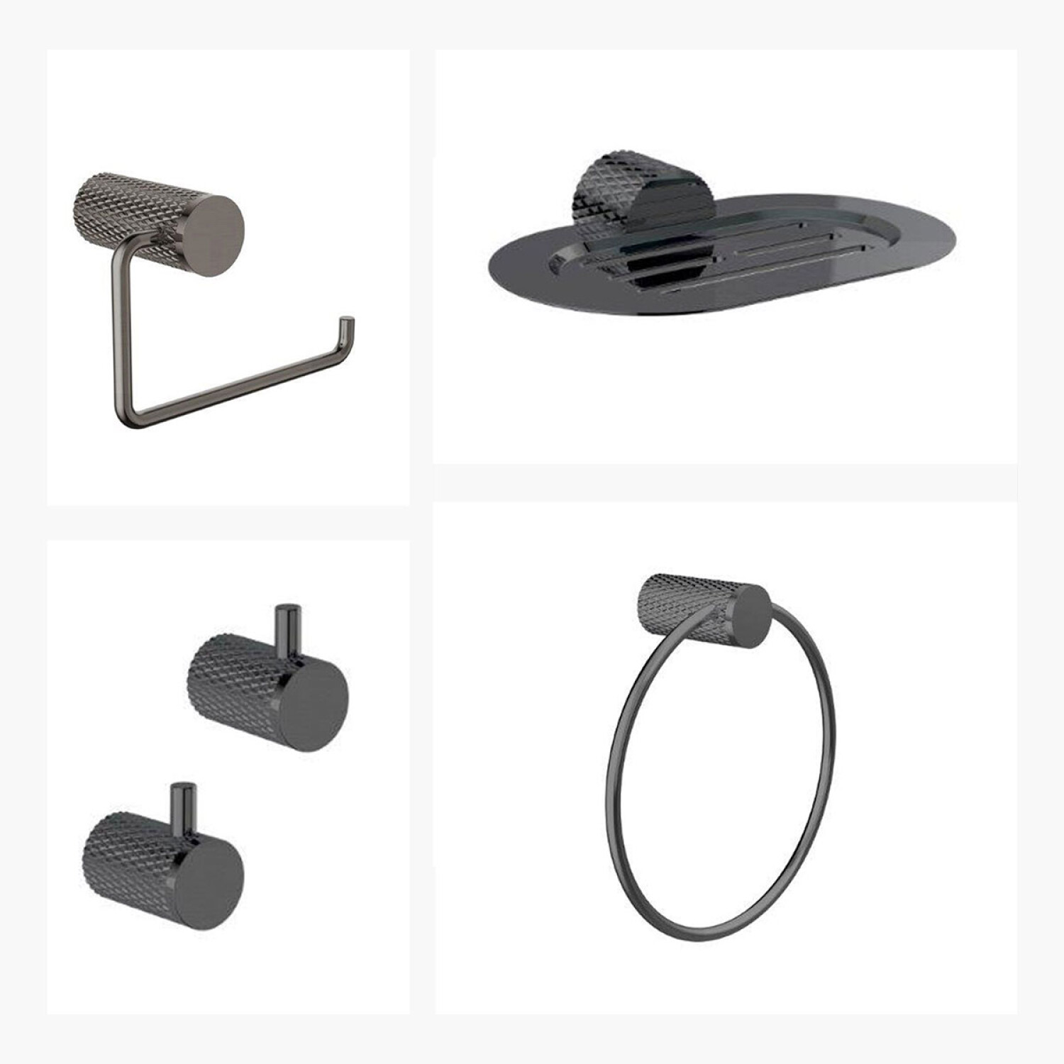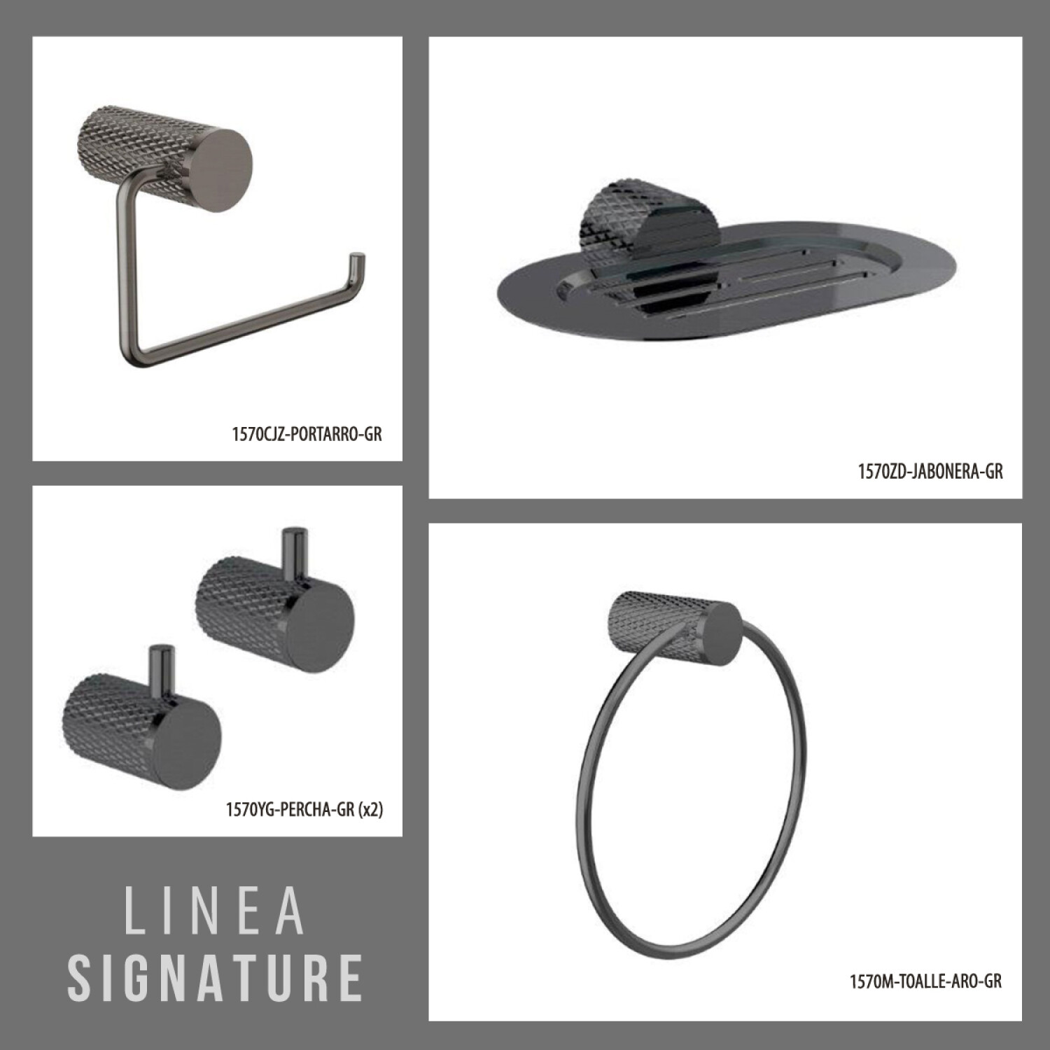 Descripcion TOALLERO ARO GR - 2 PERCHAS GR - PORTARROLLO GR - JABONERA GR