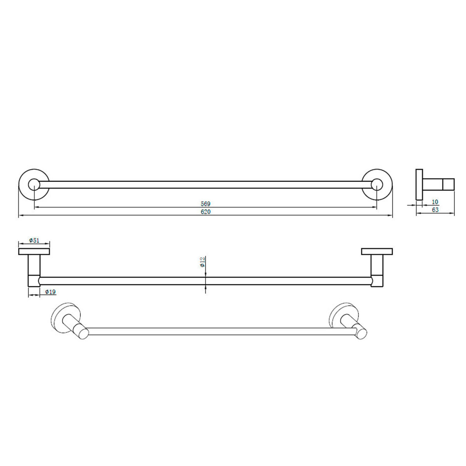 Toallero Barral 60Cm Terminacion Brush Nickel Serie Roma