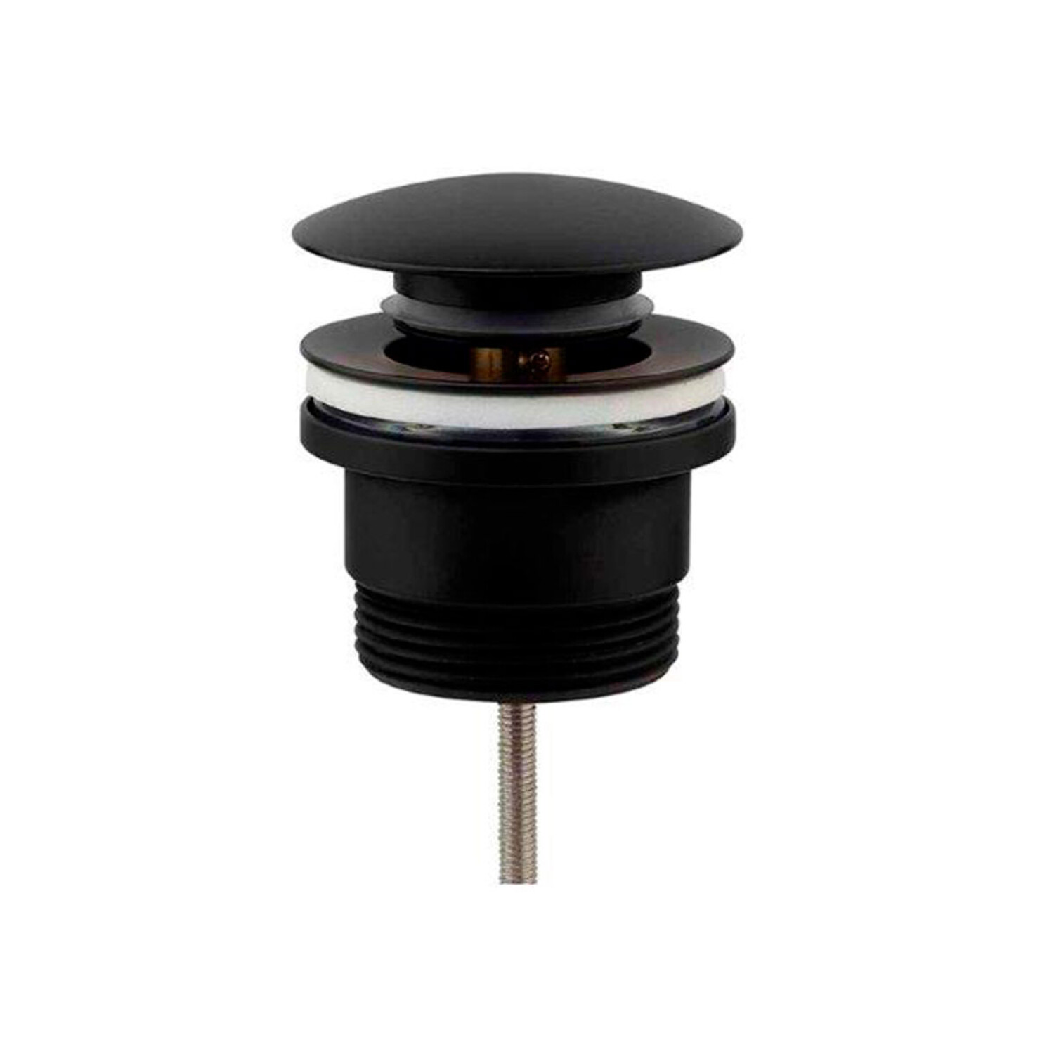 Válvula pop-up en acabado negro mate, ideal para complementar baños de estilo moderno o industrial. Fabricada con materiales de alta calidad, garantiza un sellado perfecto y un uso cómodo mediante su sistema de apertura y cierre por presión. Este accesorio combina practicidad y diseño, siendo resistente a la corrosión y fácil de limpiar. Su acabado negro mate ofrece un contraste elegante con lavabos de porcelana blanca u otros accesorios en tonalidades similares.
